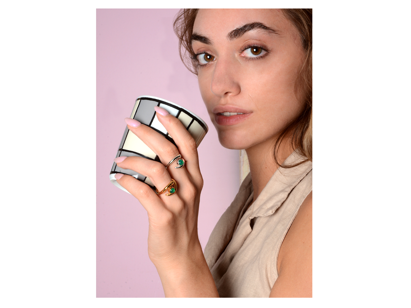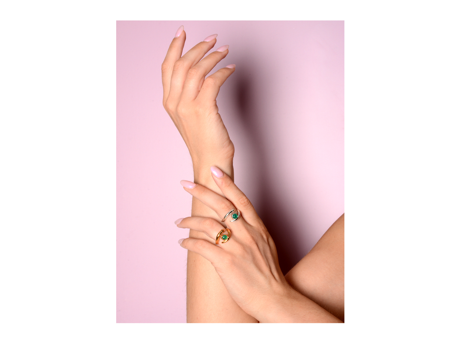Δαχτυλίδι φίδι EROS & PSYCHE από ασήμι με πράσινο ημιπολύτιμο λίθο αχάτη.