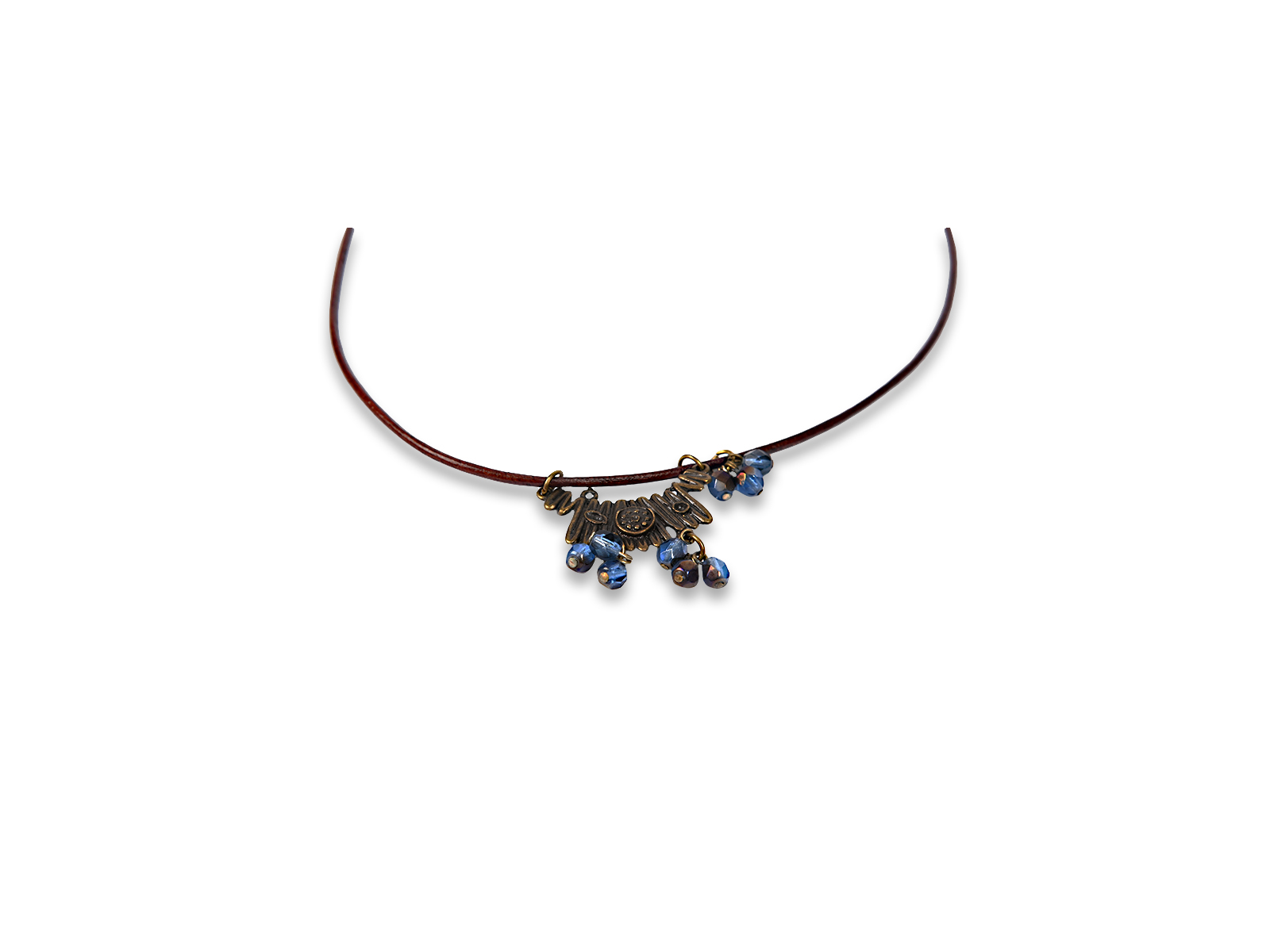Χειροποίητο κολιέ σε περίτεχνο σχήμα με ημιπολύτιμους λίθους.
