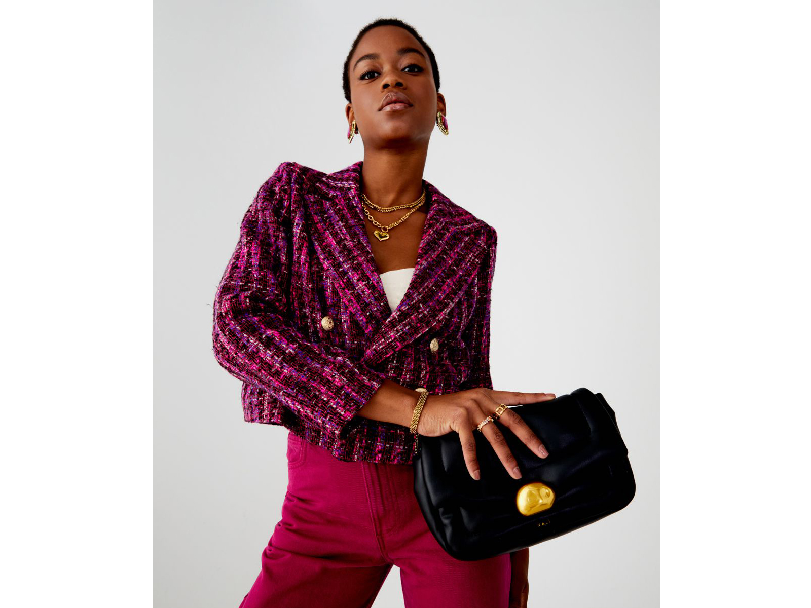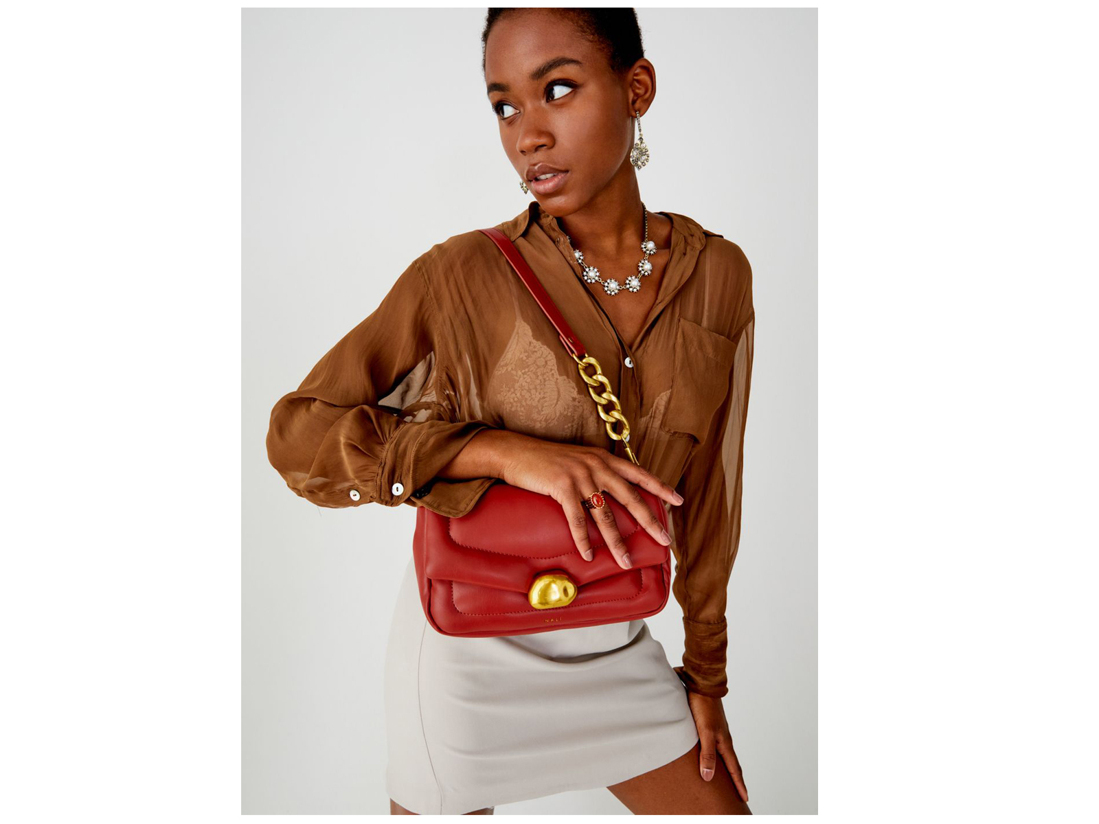 Δερμάτινη τσάντα ώμου Nalì με χρυσή λεπτομέρεια στο κούμπωμα.