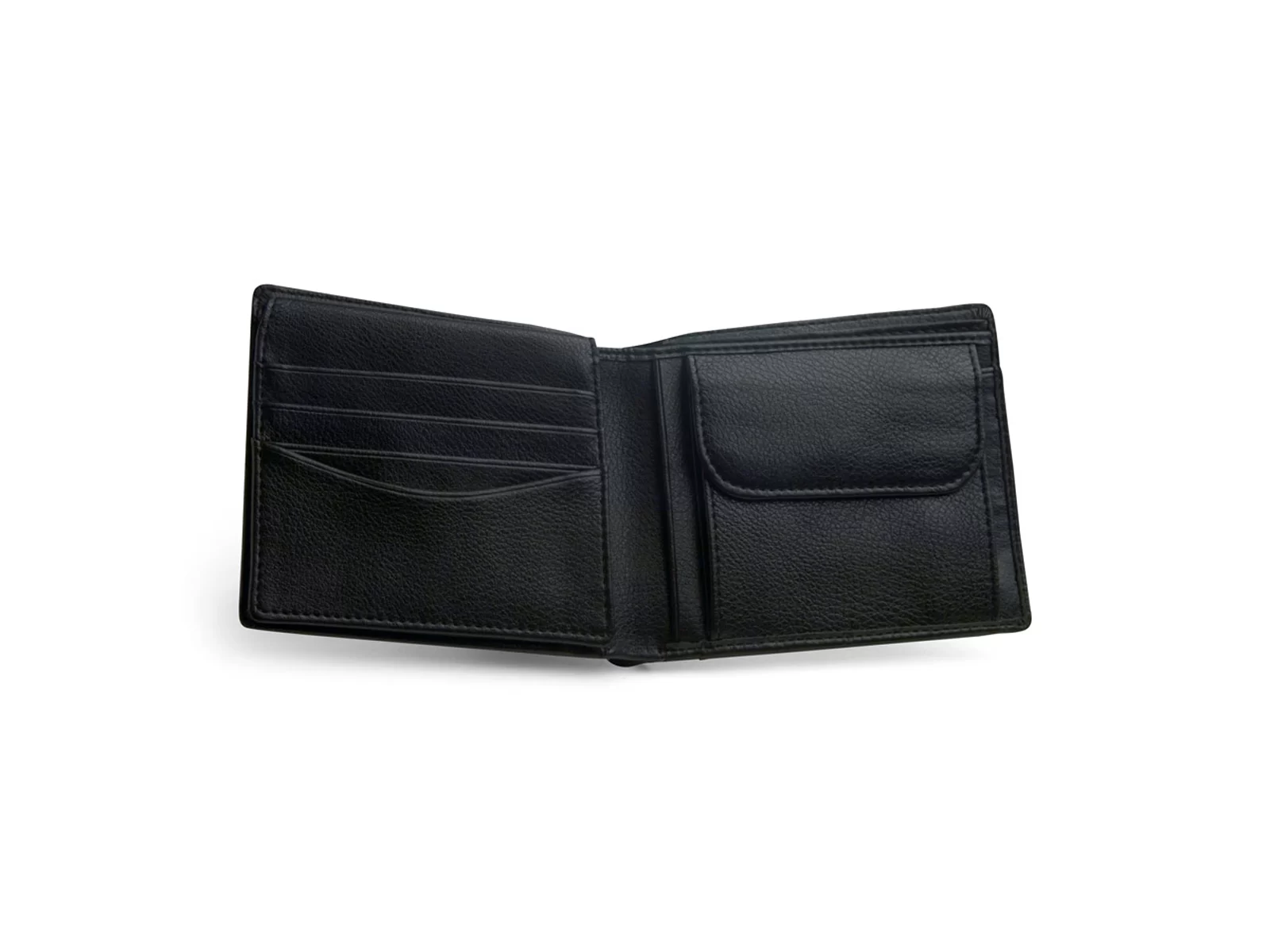 Δερμάτινο πορτοφόλι αποκλεισμού RFID με τσέπη για κέρματα, θέση για χαρτονομίσματα και ένθετα για 9 κάρτες.