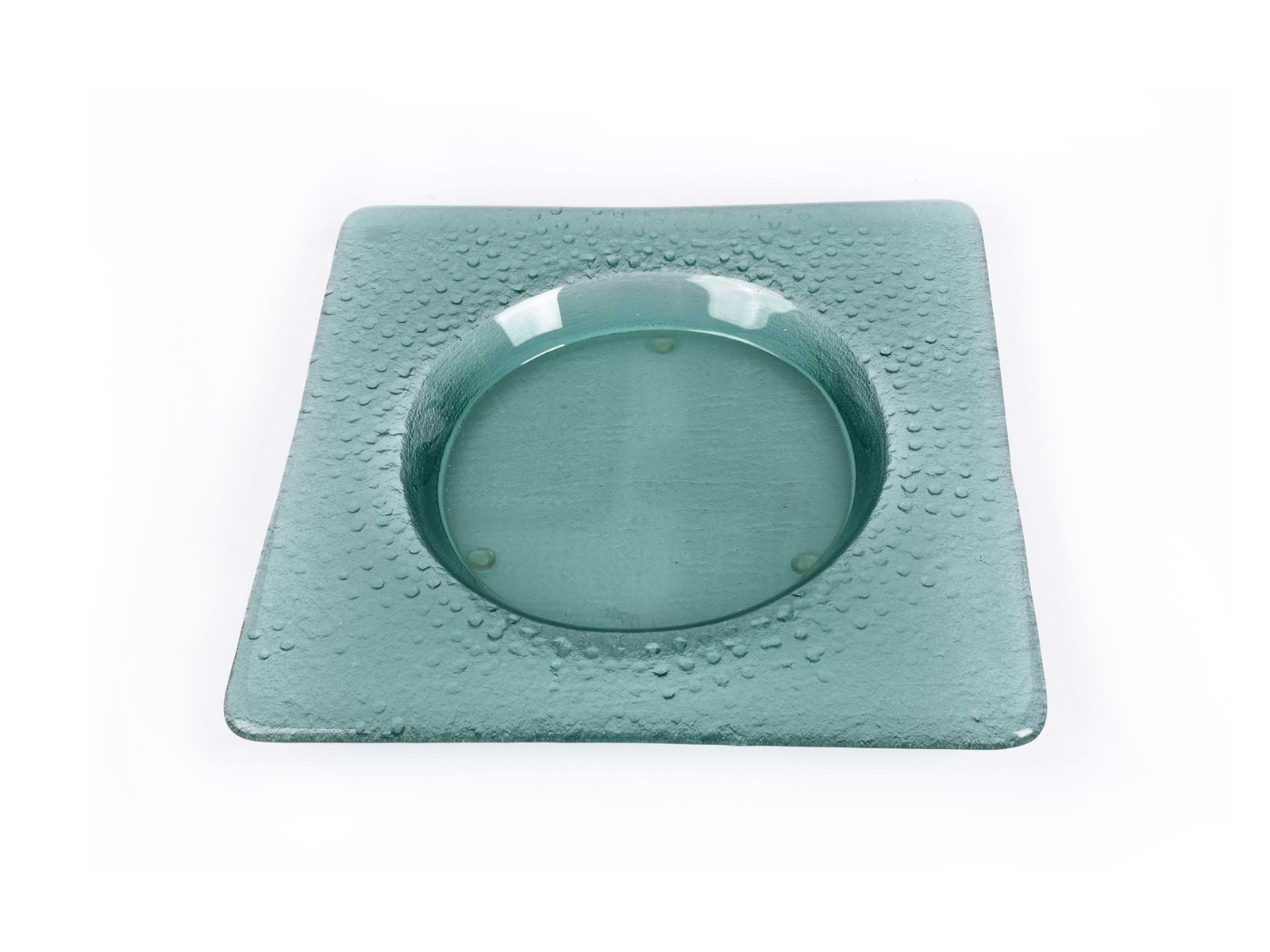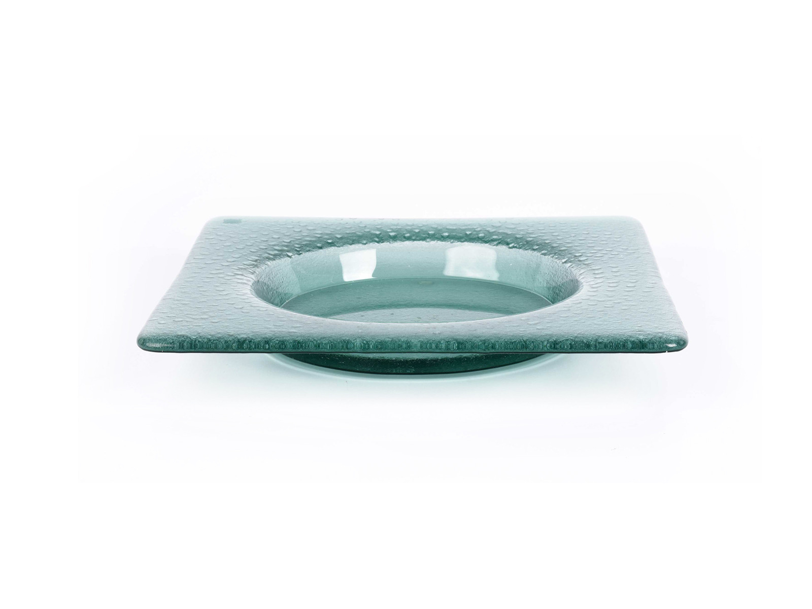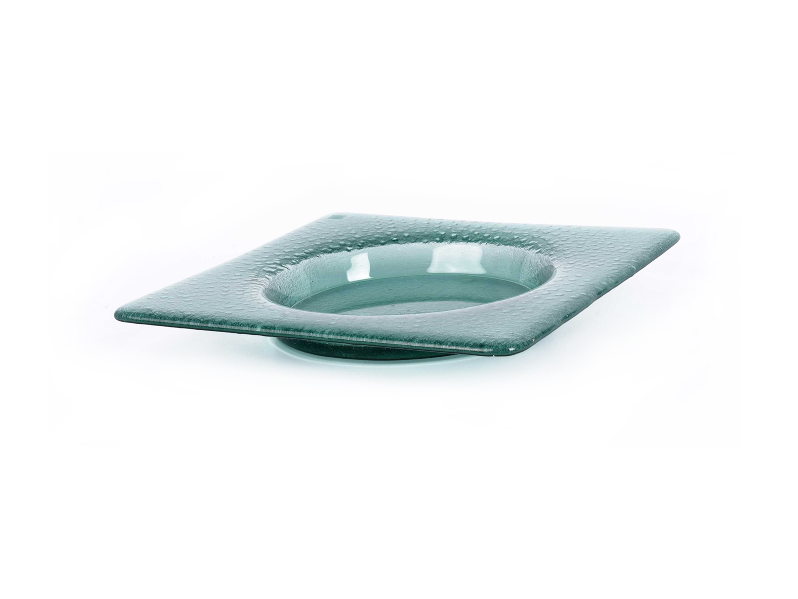 Χειροποιήτο γυάλινο ρηχό διακοσμητικό πιάτο χρώματος βεραμάν.