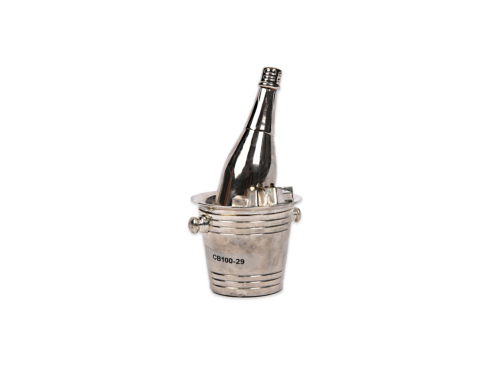 Επιτραπέζιο ασημένιο διακοσμητικό, μπουκάλι σαμπάνια για αλάτι και πιπέρι.