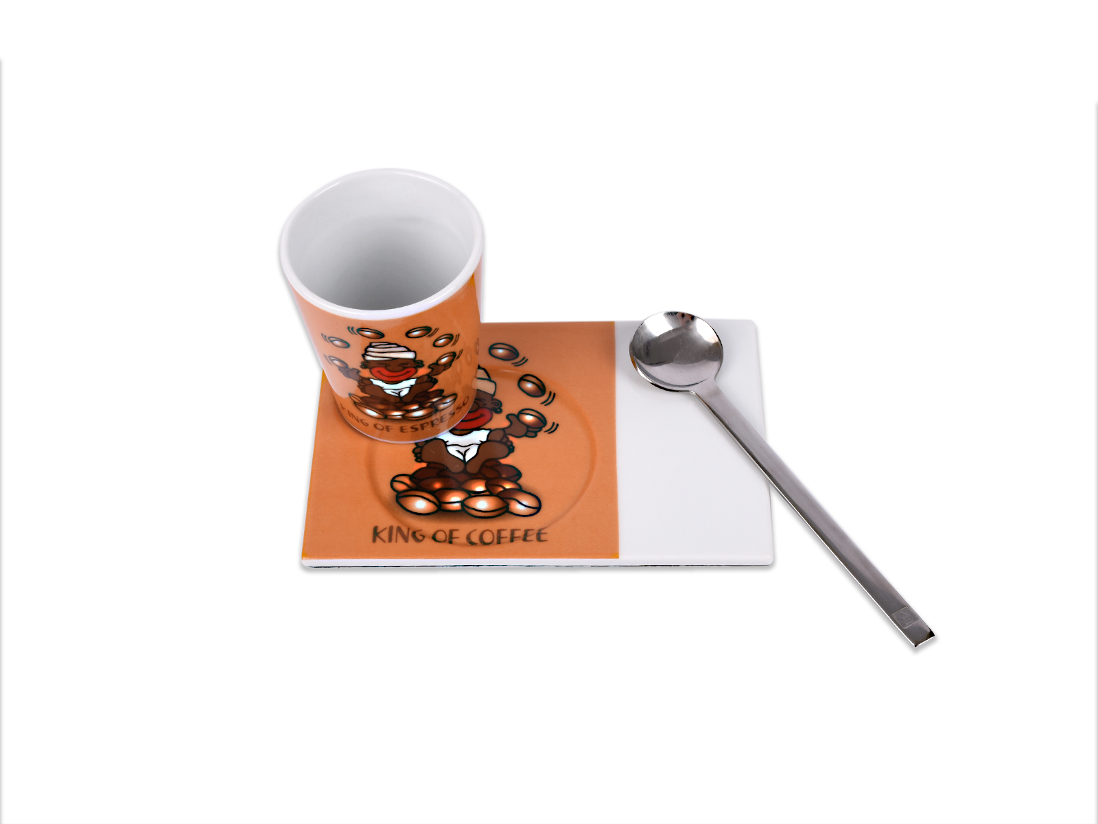 Βάση για φλυτζάνι με μαγνήτη για το κουταλάκι, πορσελάνη με κόκκους καφέ.