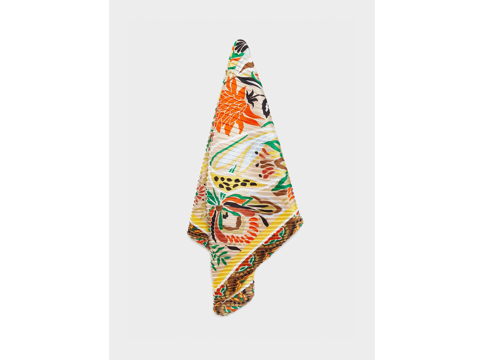 Πλισέ φουλάρι NALI με σχέδιο λουλούδια σε πορτοκάλι χρώμα.