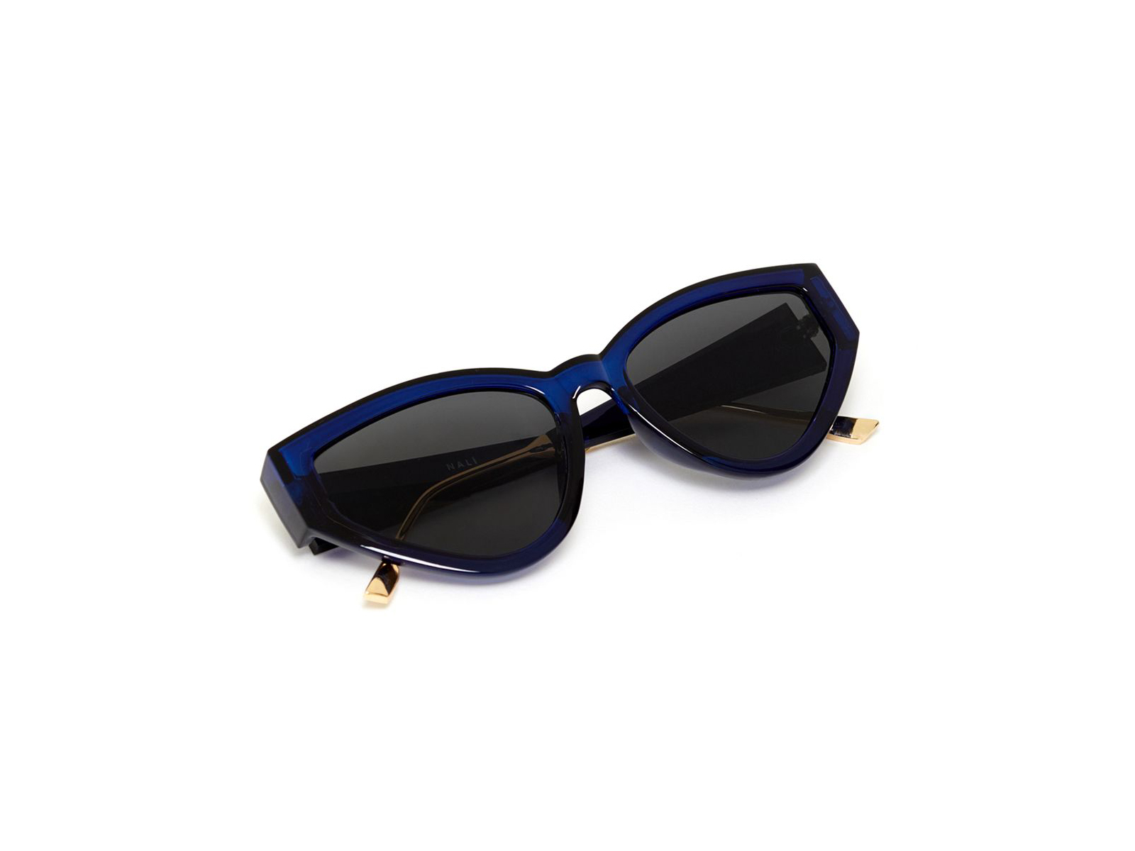 Γυαλιά ηλίου Nalì Cat eye από μπλε σκελετό και μαύρους φακούς.