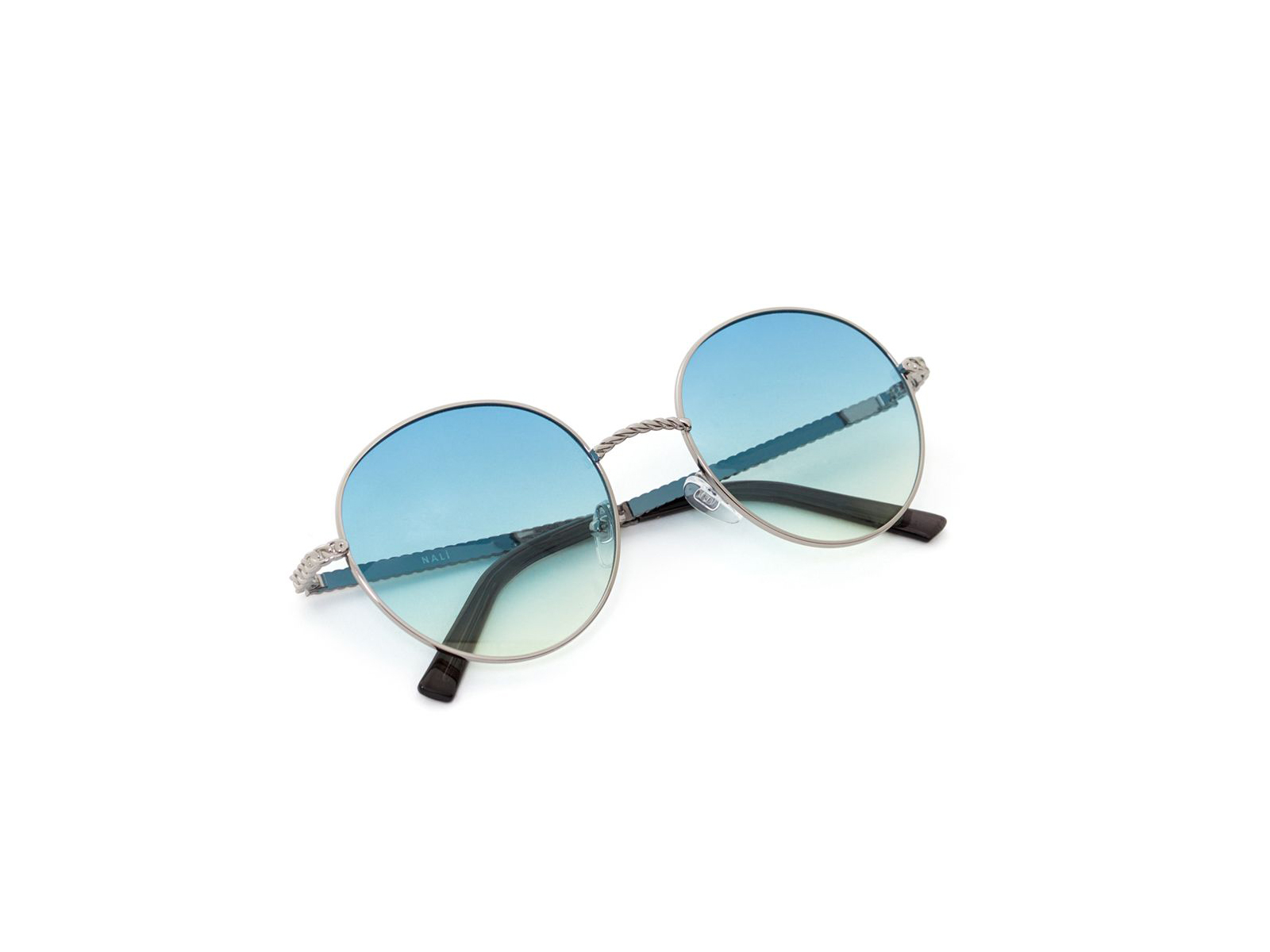 Γυαλιά Nalì με ασημί σκελετό και μπλε φακούς.