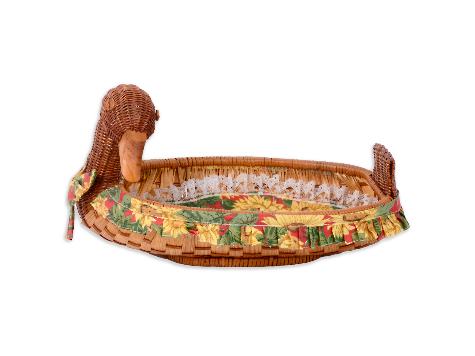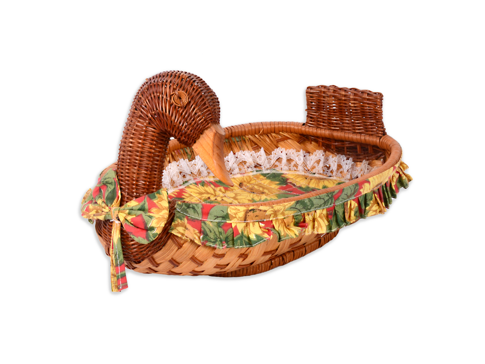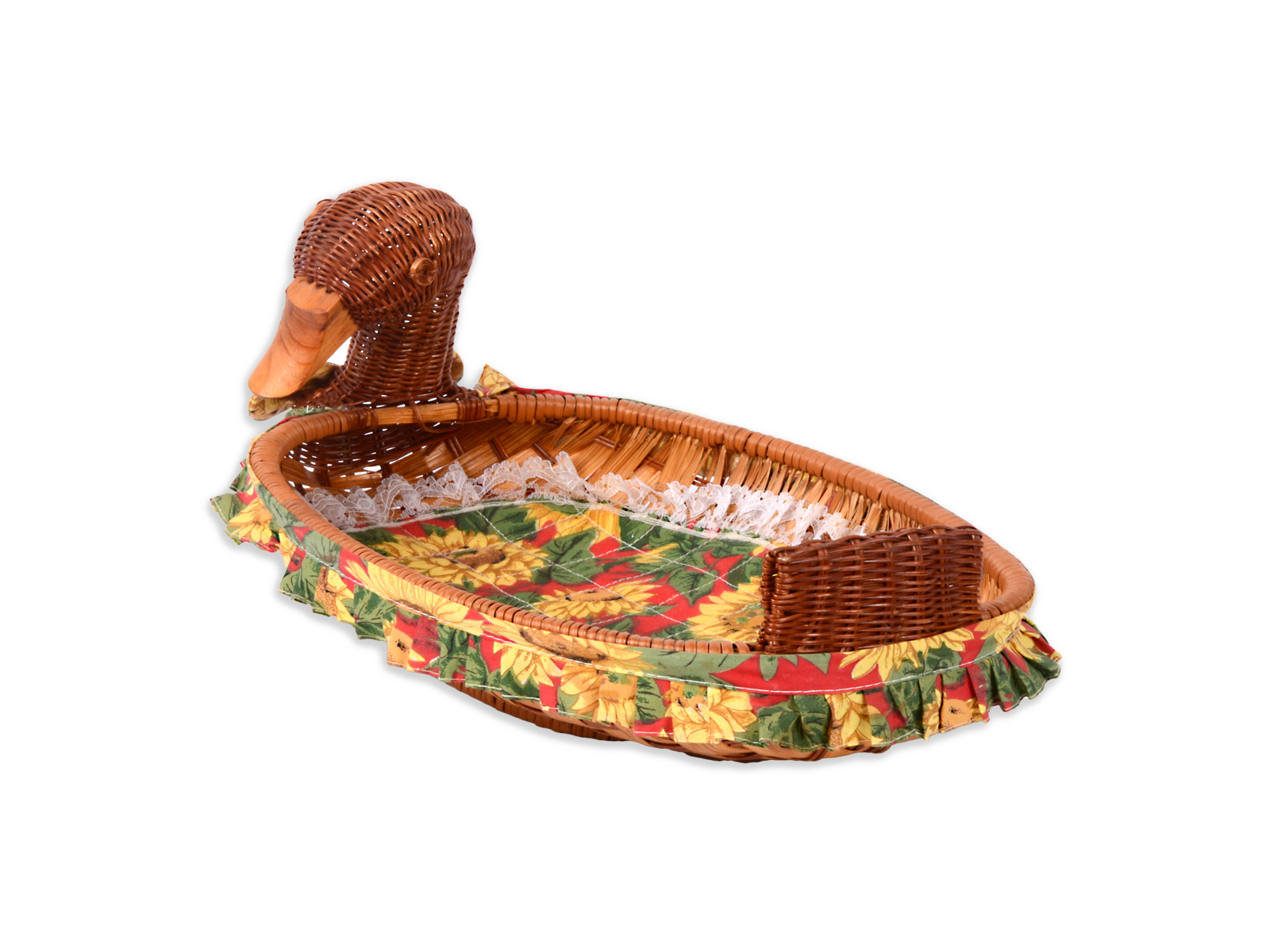 Καλαθάκι σε σχήμα πάπιας φτιαγμένο από ξύλο και ύφασμα. Ιδανικό για αποθηκευτικό χώρο για φρούτα, αυγά, μπαχαρικά και άλλα προϊόντα. Αποτελεί μια χαρούμενη και παιχνιδιάρικη προσθήκη στον χώρο σας, χάρη στον ξεχωριστό σχεδιασμό αλλά και στα φωτεινά του χρώματα.