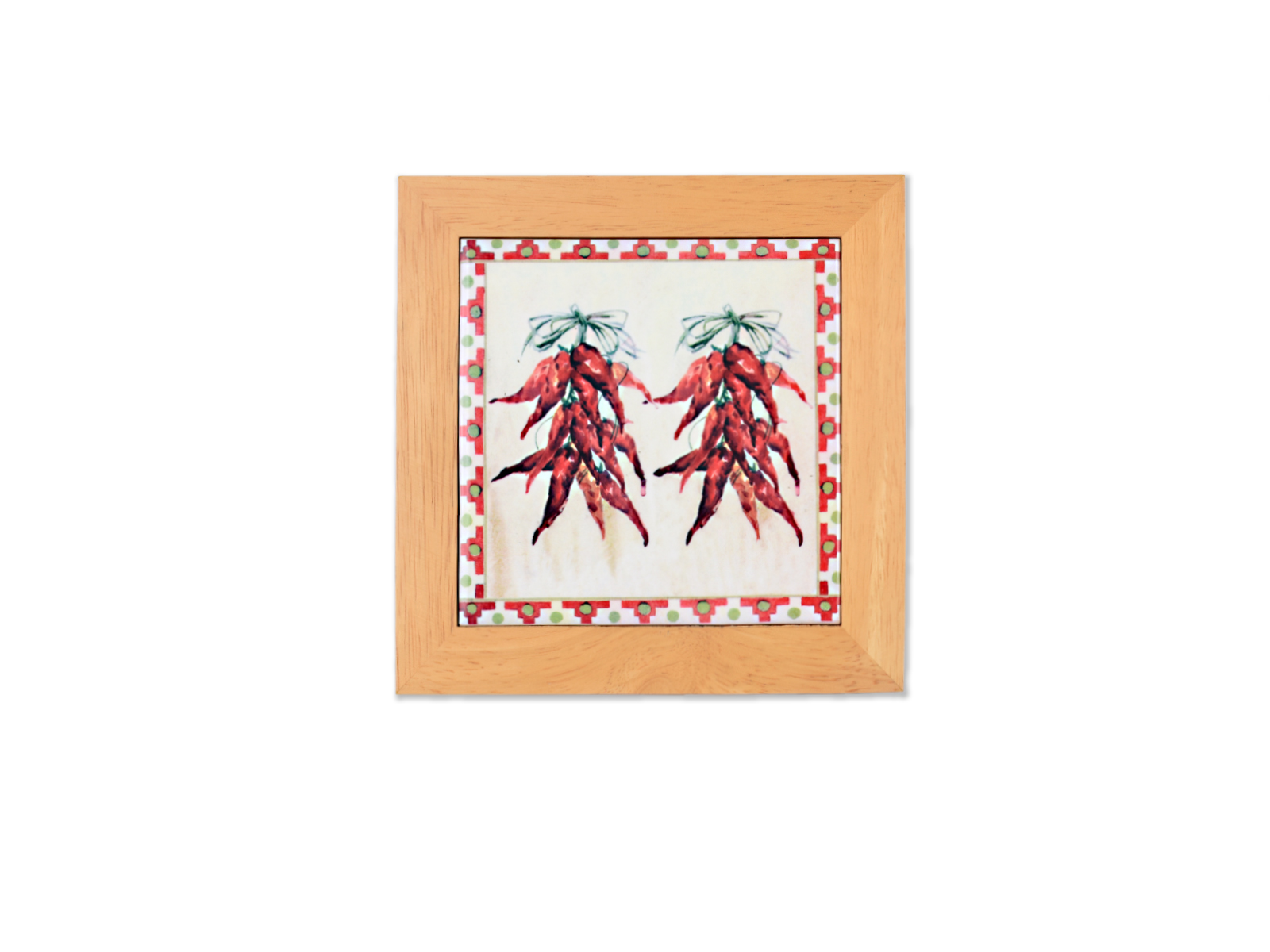 Κεραμική Βάση με ξύλο περιμετρικά για χρήση σαν βάση για ζεστά ή για διακοσμητικό κρεμαστό στον τοίχο με απεικόνιση πιπεριές.