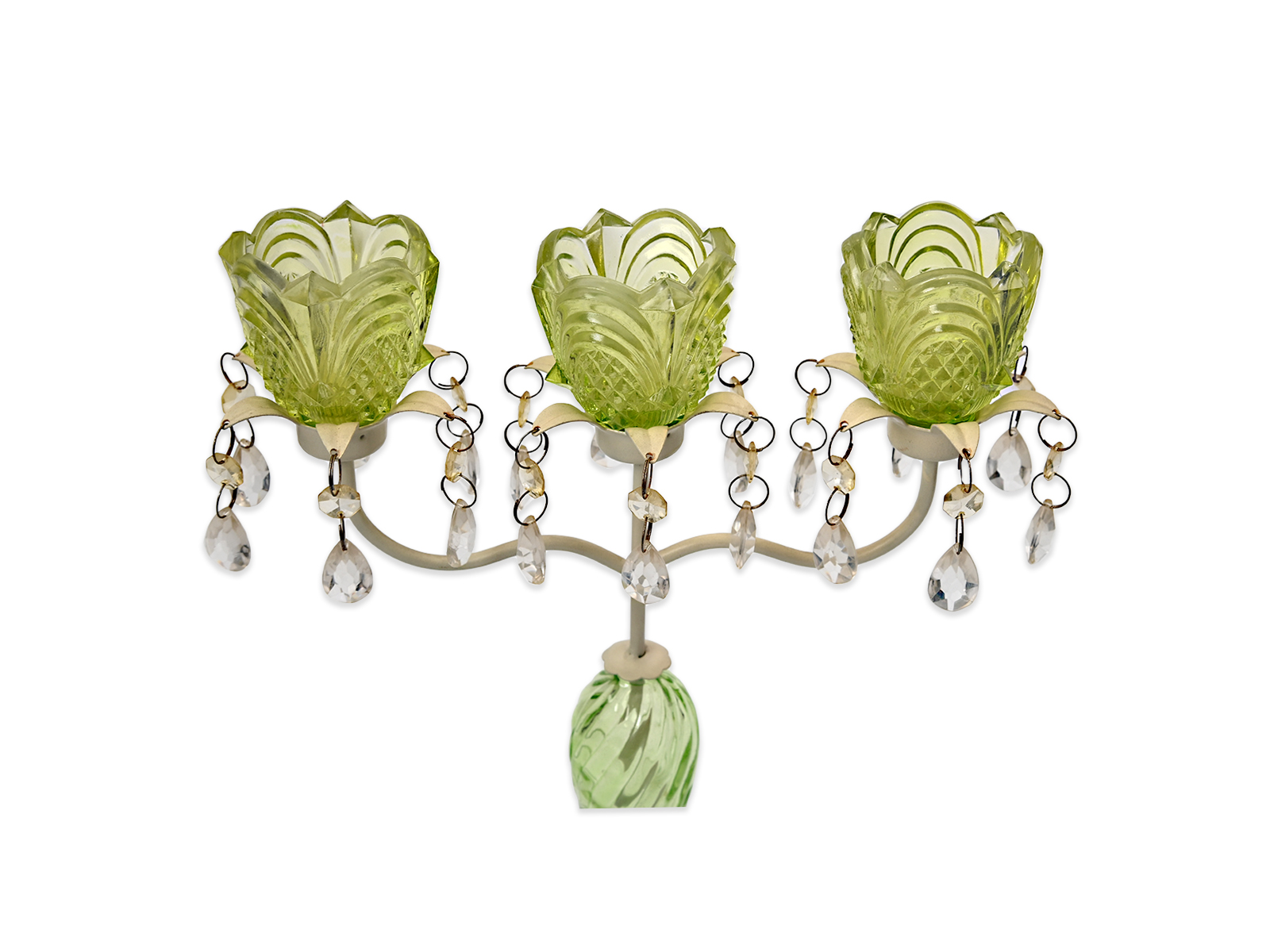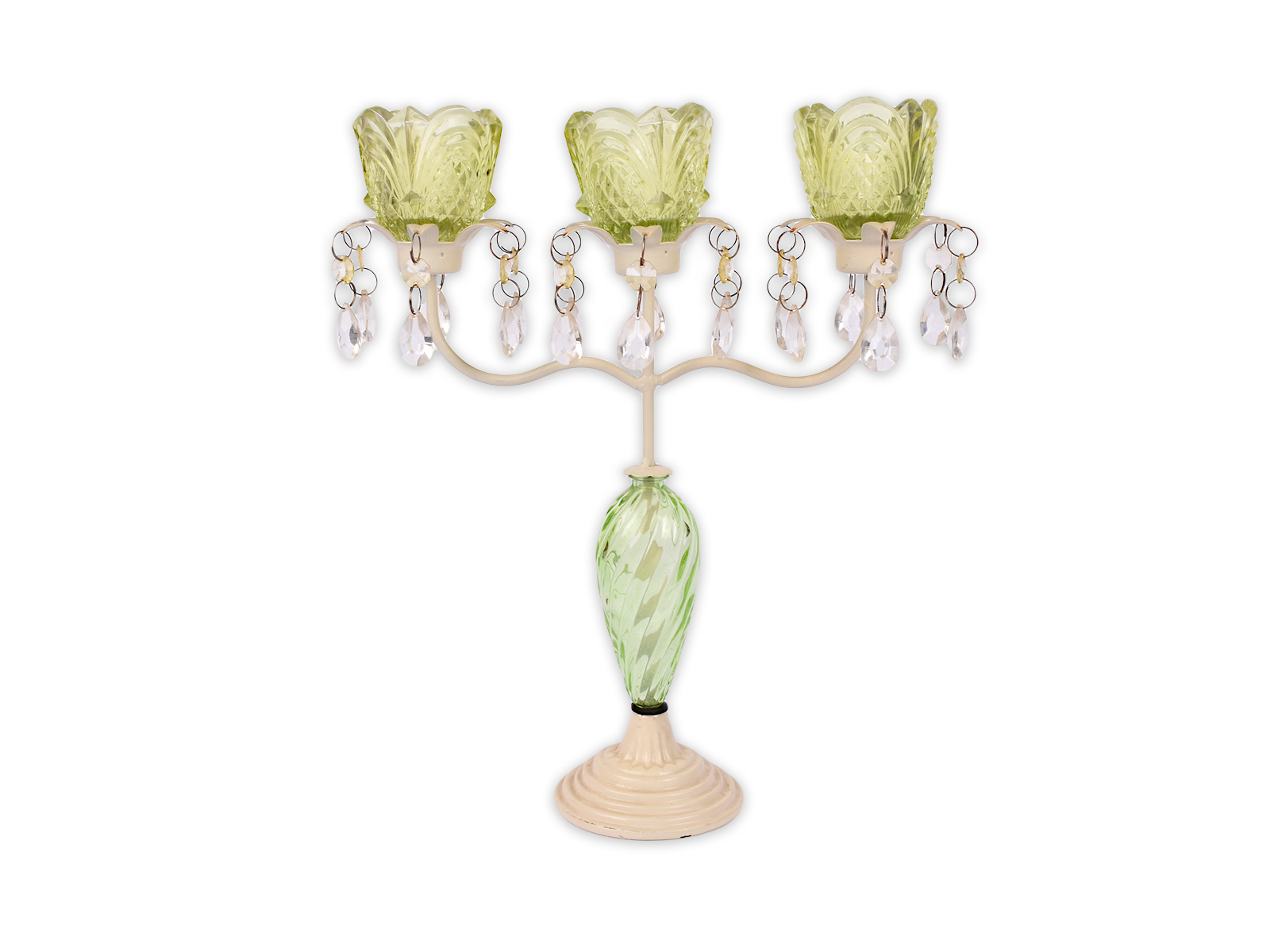 Vintage κηροπήγιο με τρείς θέσεις για κεριά και διακόσμηση από κρυσταλλάκια.