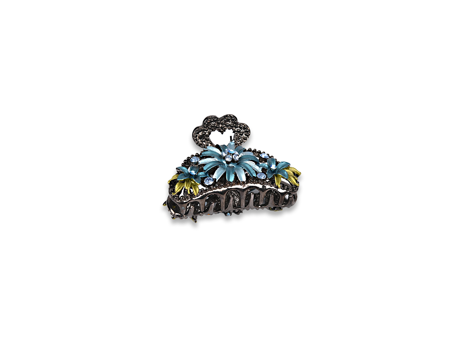 Κοκαλάκι μαλλιών, κλάμερ, με σχέδιο γαλάζια λουλούδια και μπλε στρας.