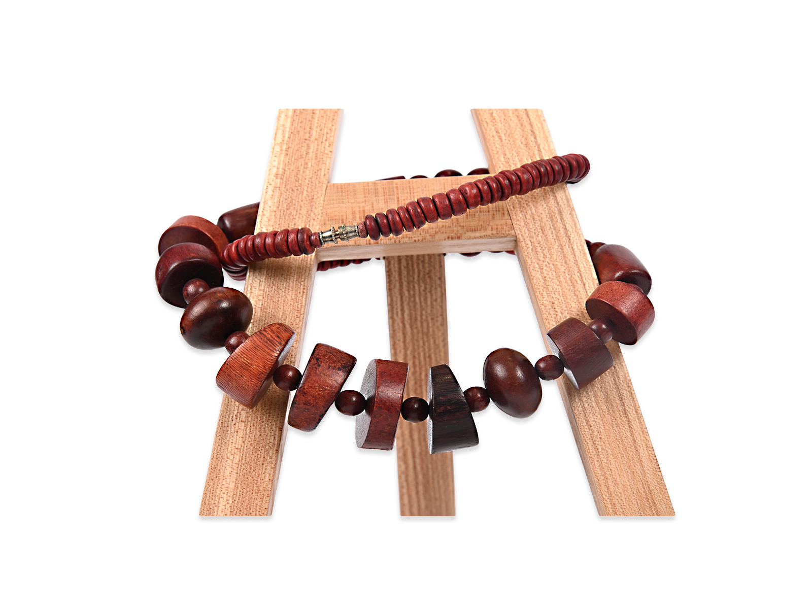 Κολιέ από ξύλινες χάντρες με ιδιαίτερο σχέδιο.