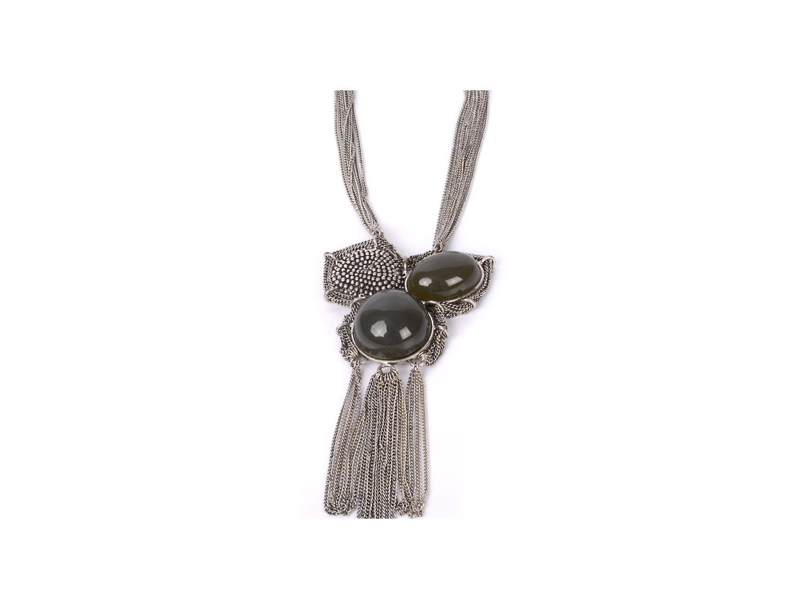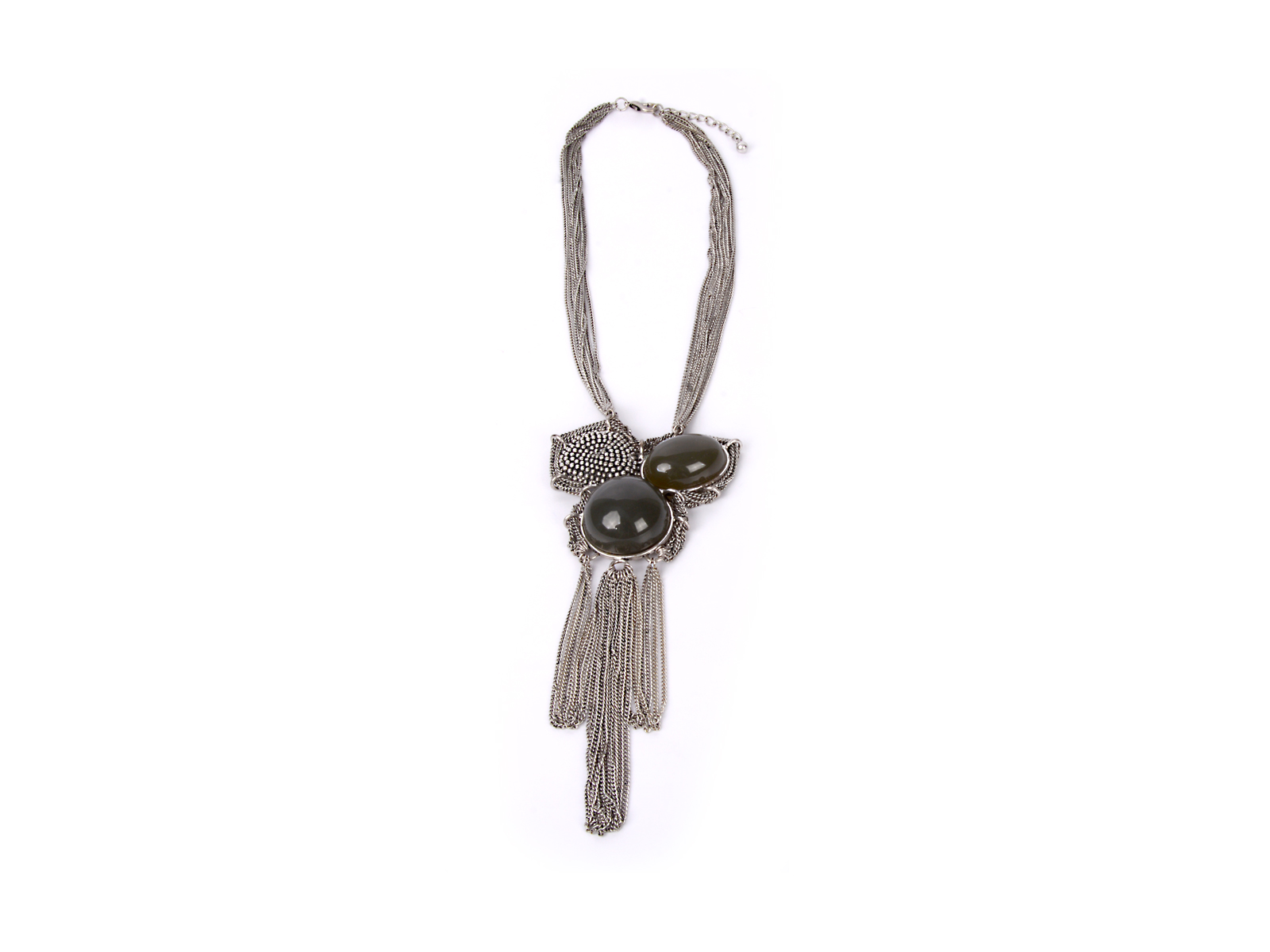Κολιέ με αλυσίδες και πράσινες πέτρες από ημιπολύτιμους λίθους.