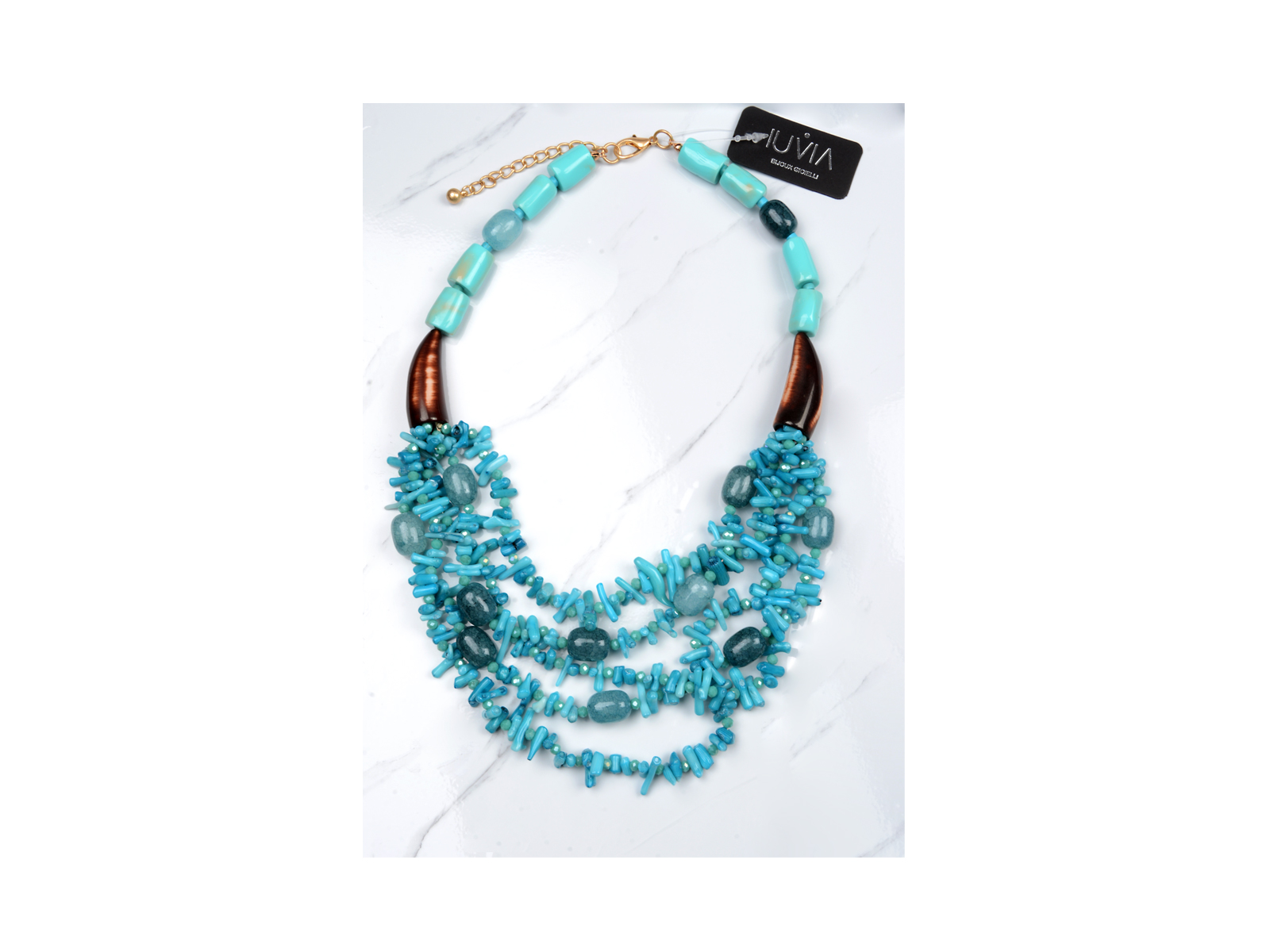 Καλοκαιρινό κολιέ με κοράλλια, χάντρες και φυσικό κόκκαλο.