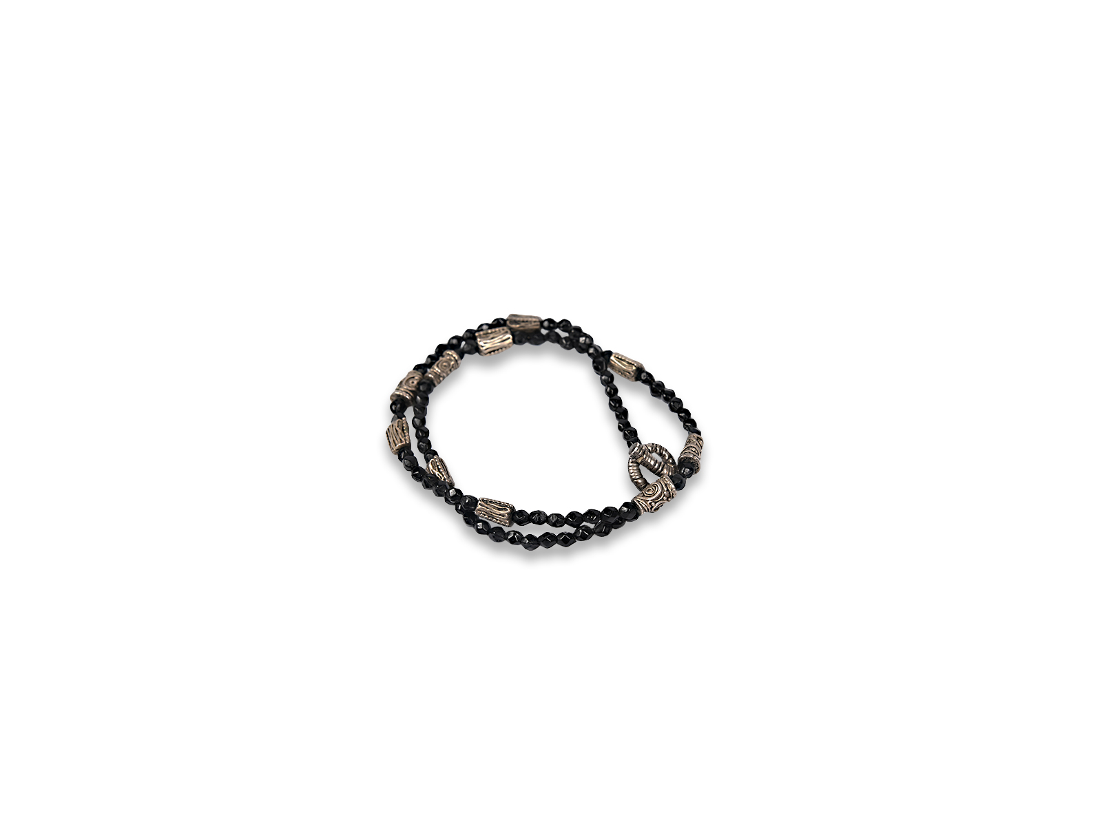 Κολιέ με ημιπολύτιμους λίθους και ασημένιες λεπτομέρειες που μπορεί να φορεθεί και ως βραχιόλι.