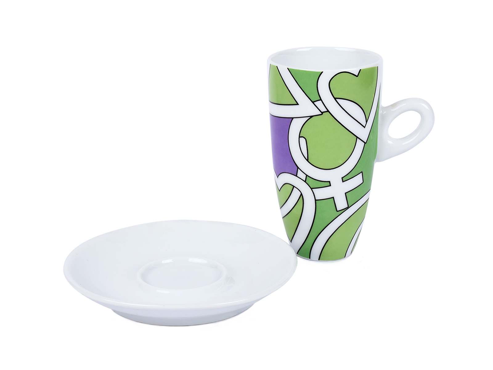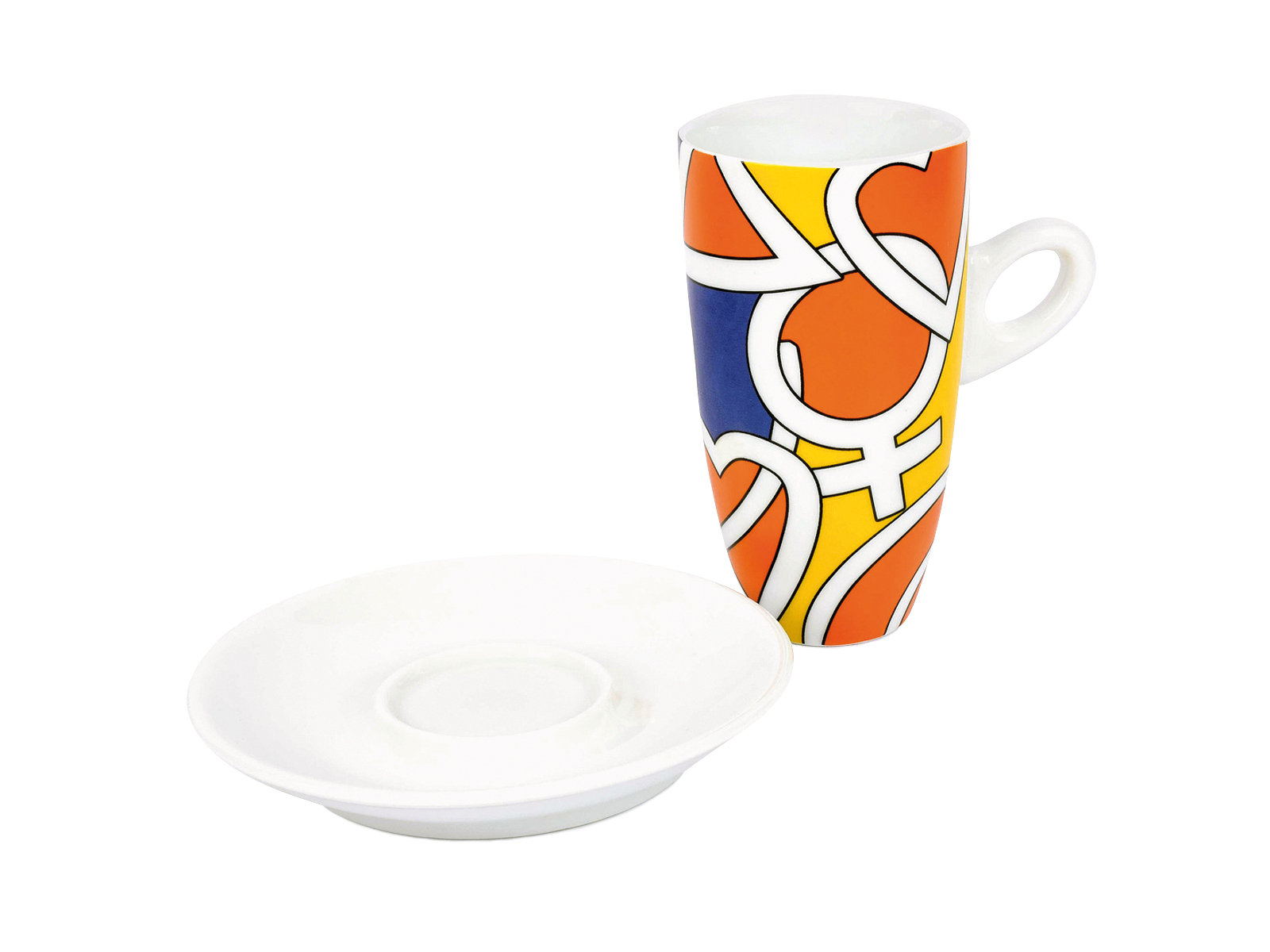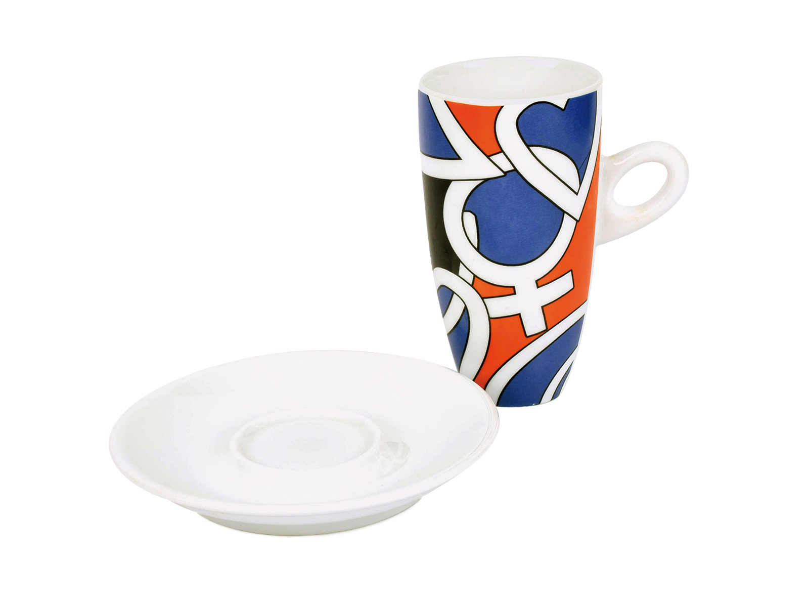 Κούπα ροφήματος με γεωμετρικά σχέδια και πιατάκι.