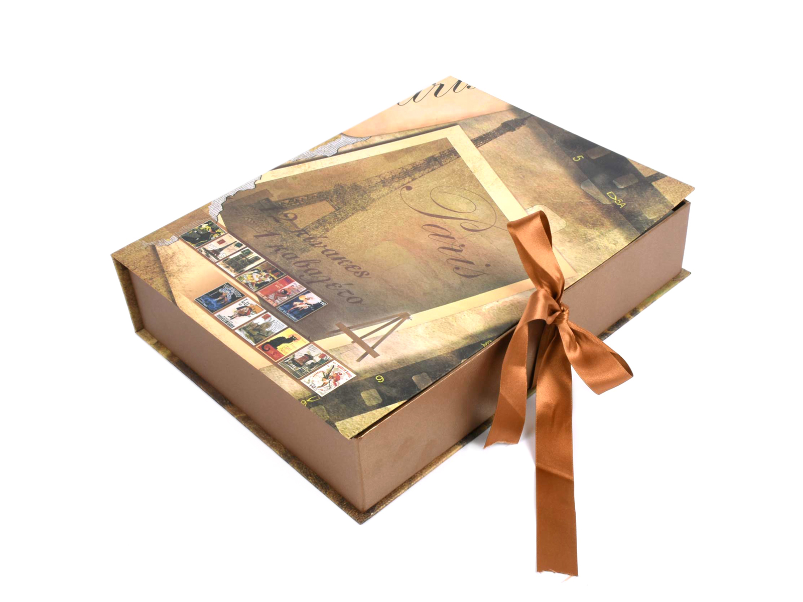 Κουτί με θεματική εκτύπωση του Παρισιού που περιλαμβάνει 12 καρτολίνες και ένα καβαλέτο.