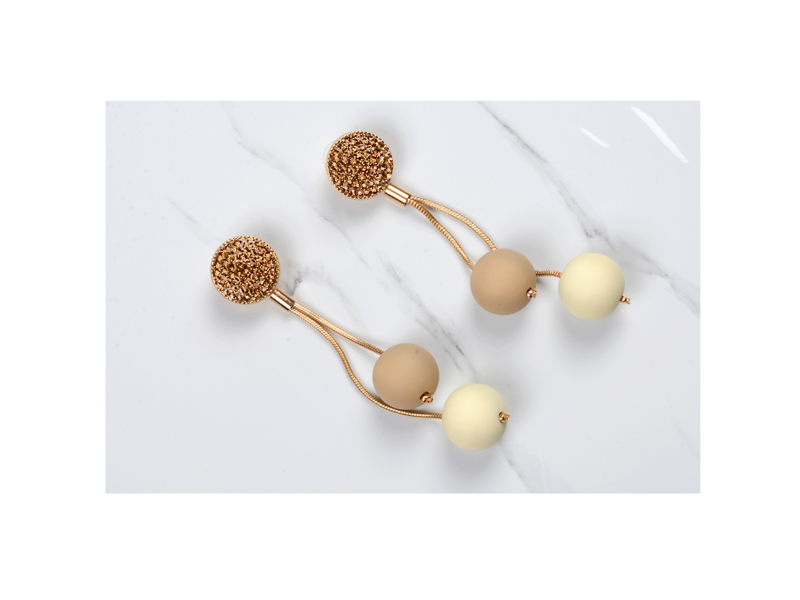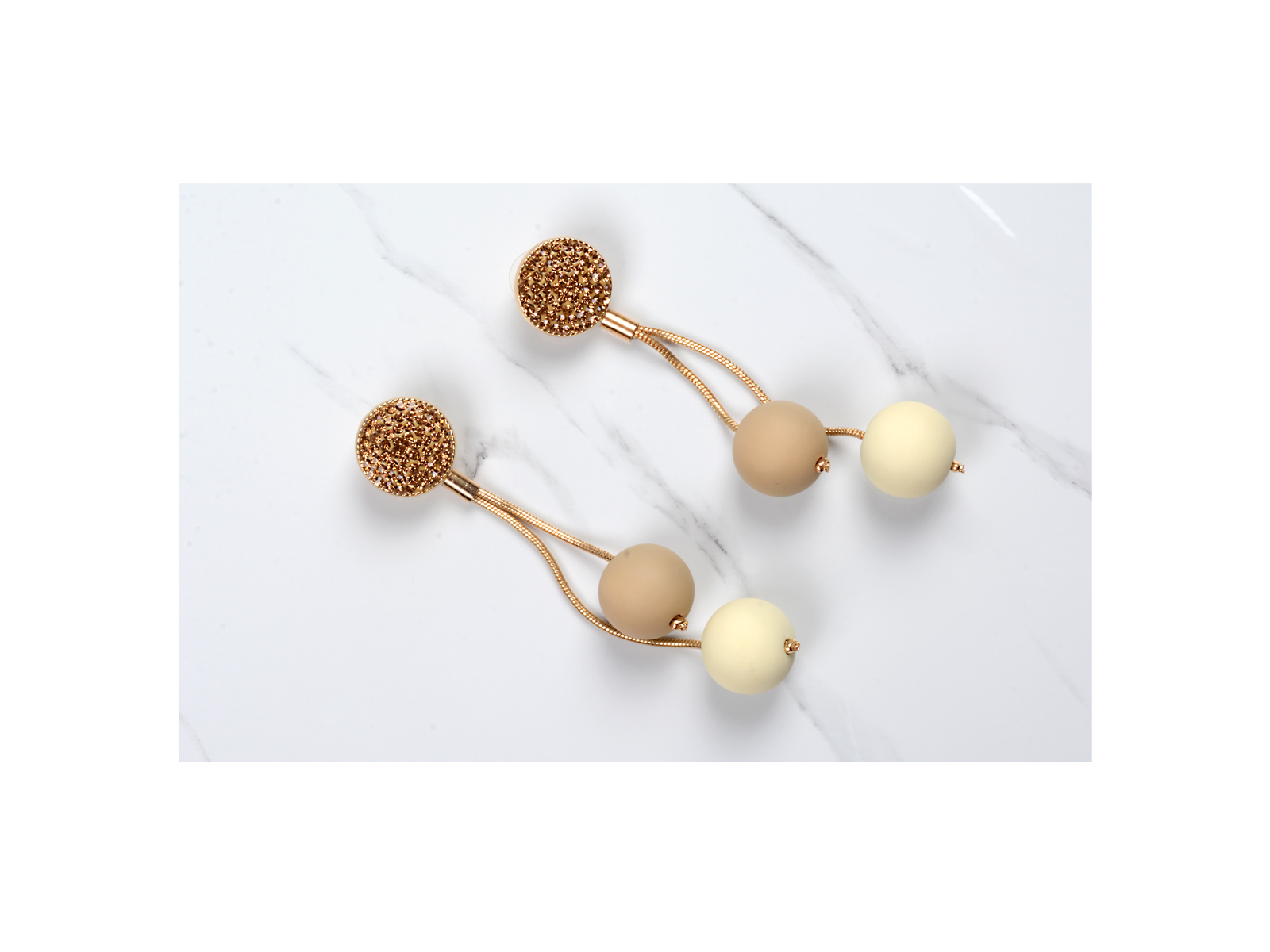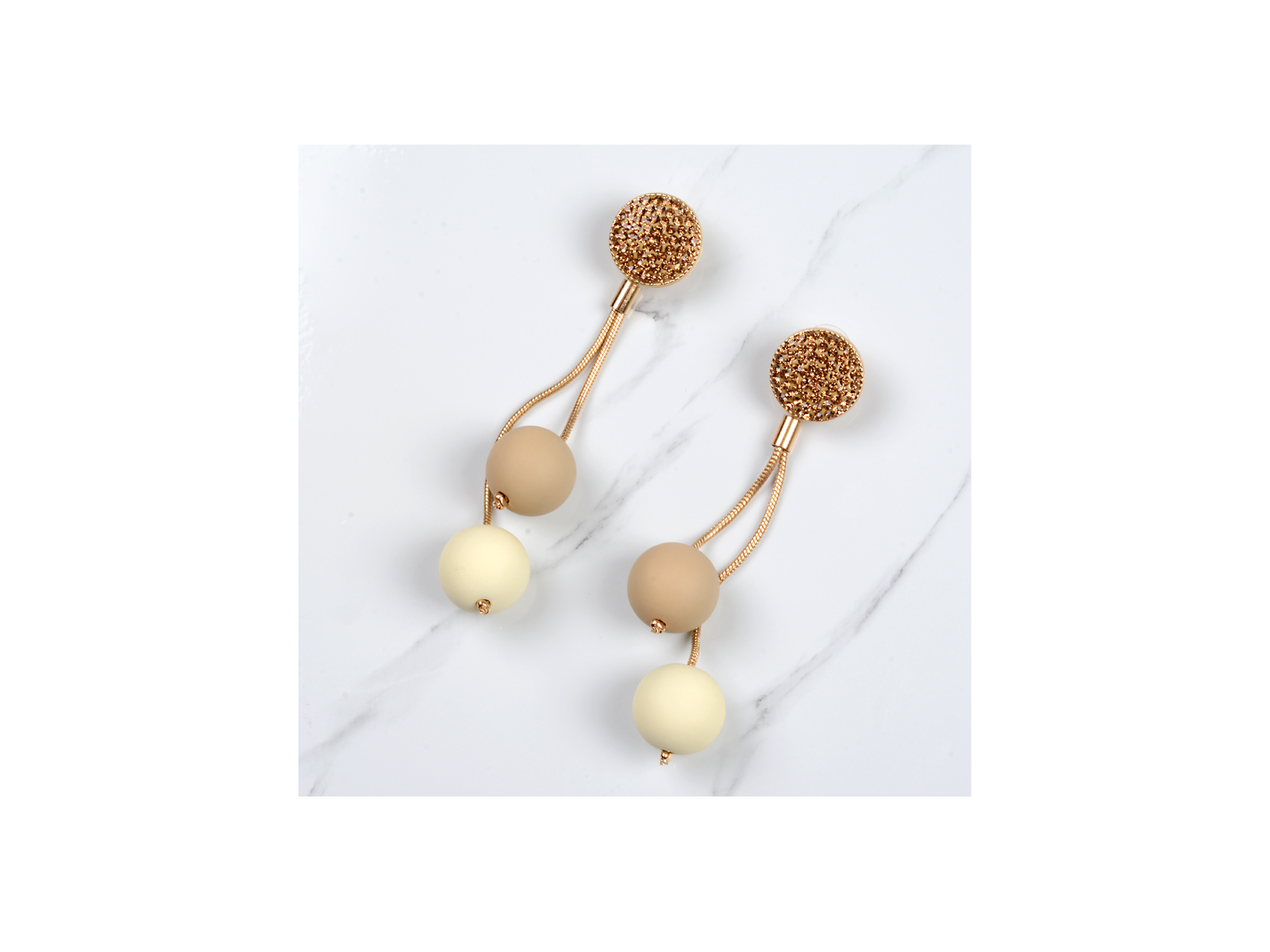 Κρεμαστά σκουλαρίκια με στρας και μπεζ μπάλες.