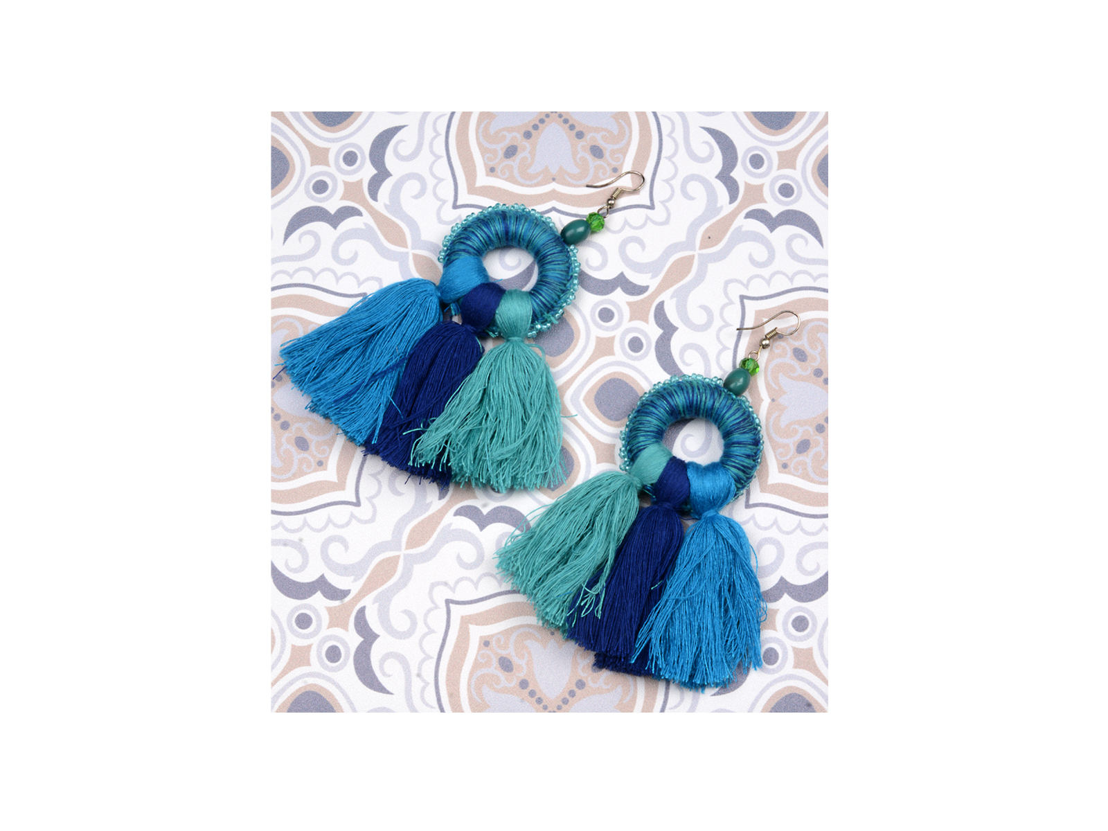 Κρεμαστά σκουλαρίκια από χάντρες και κλωστή.