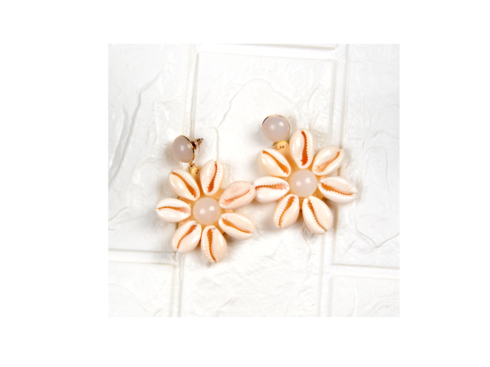 Κρεμαστά σκουλαρίκια σε σχήμα μαργαρίτας από κοχύλια και πέτρα.