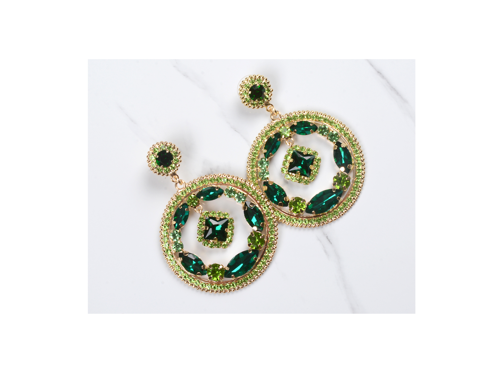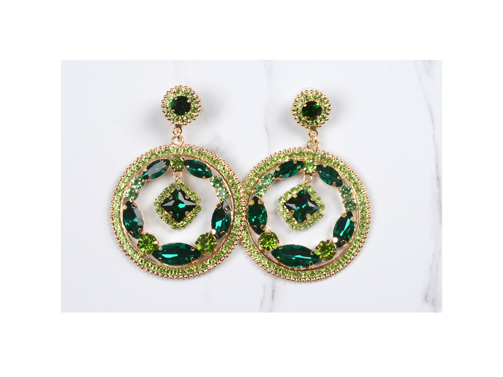 Κρεμαστά σκουλαρίκια χρυσά κύκλος με πράσινες πέτρες.