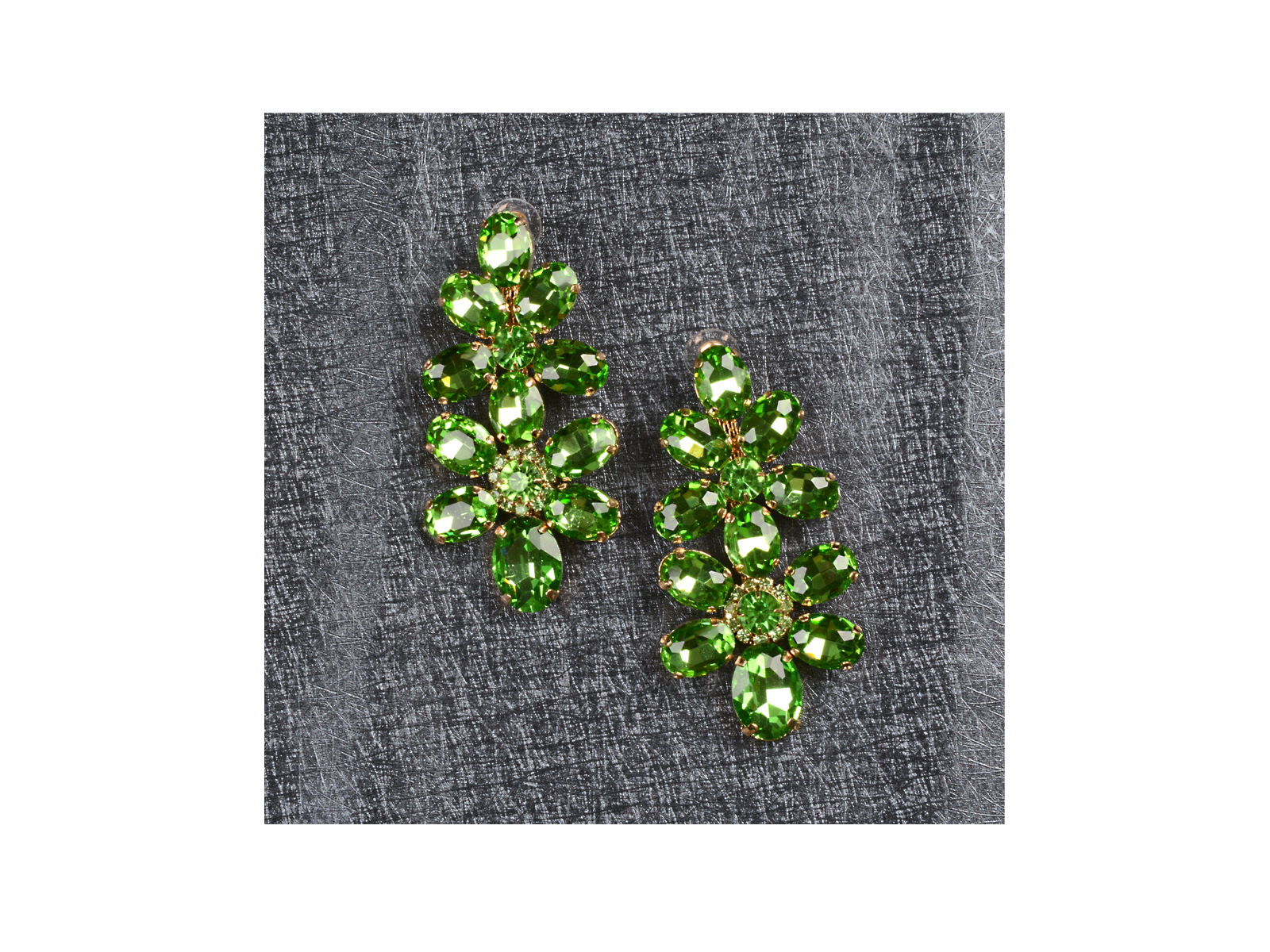 Κρεμαστά σκουλαρίκια λουλούδια με πράσινες πέτρες.