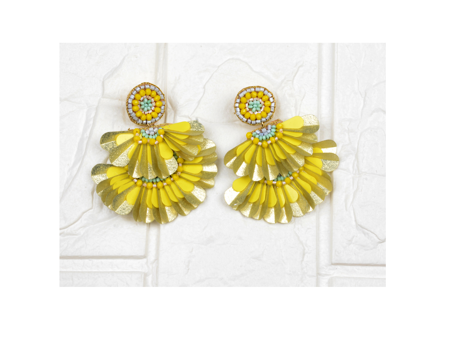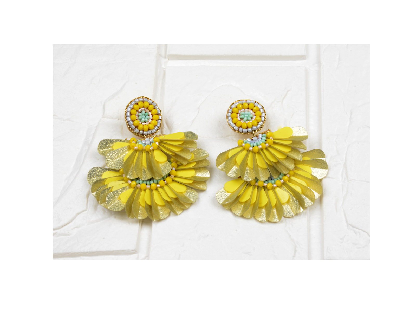 Κρεμαστά σκουλαρίκια με κίτρινα πέταλα. Το must have του καλοκαιριού !