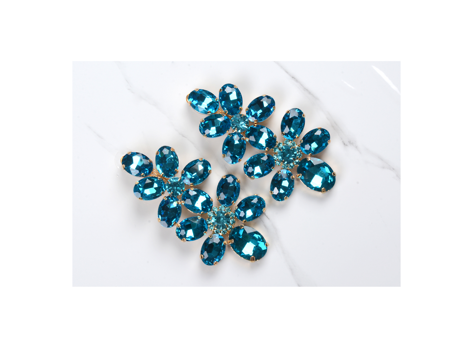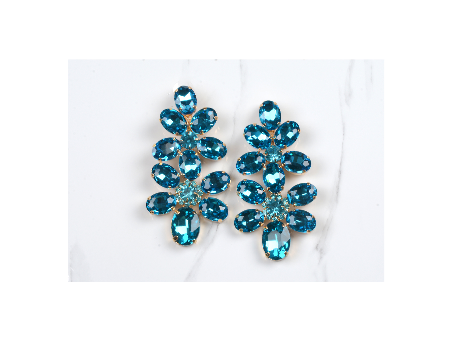 Κρεμαστά σκουλαρίκια από ασήμι με μπλε γυαλιστερά πετράδια.