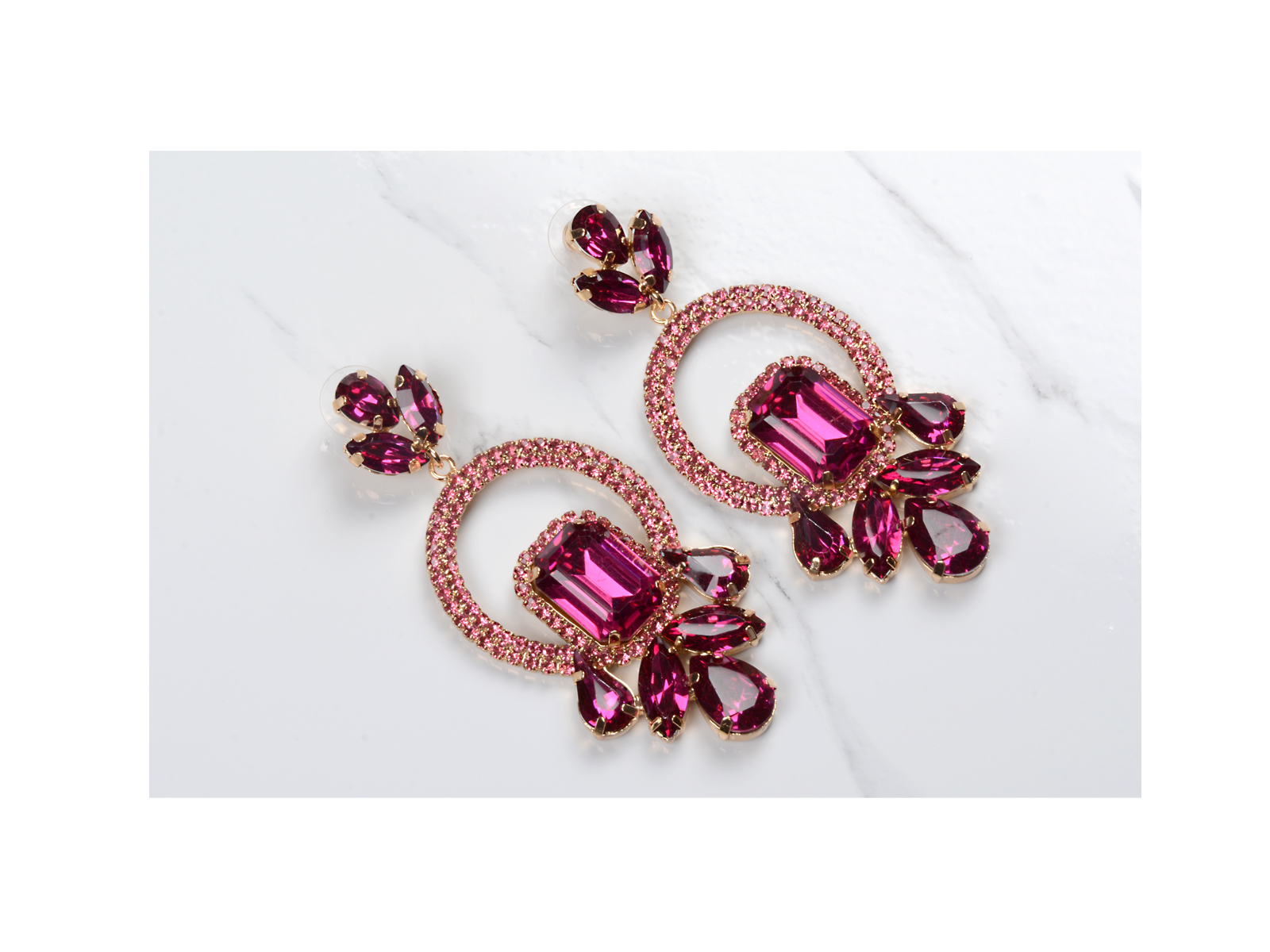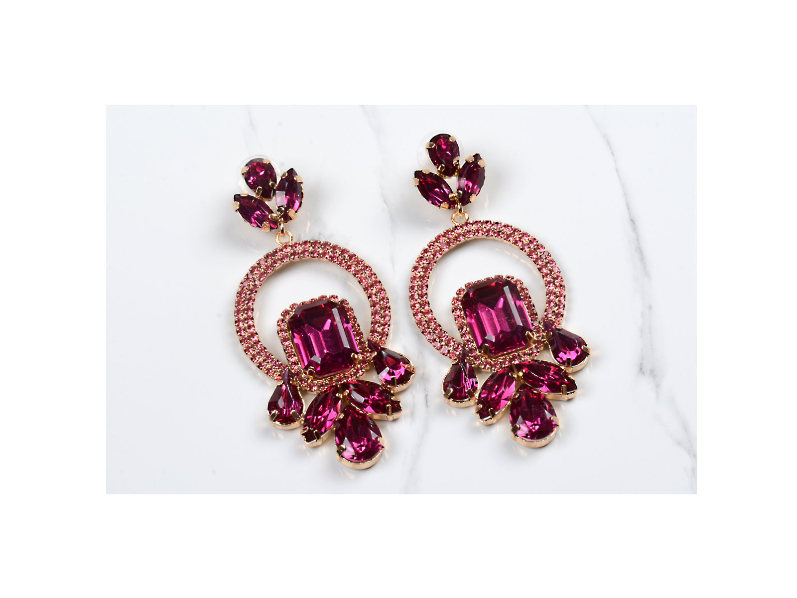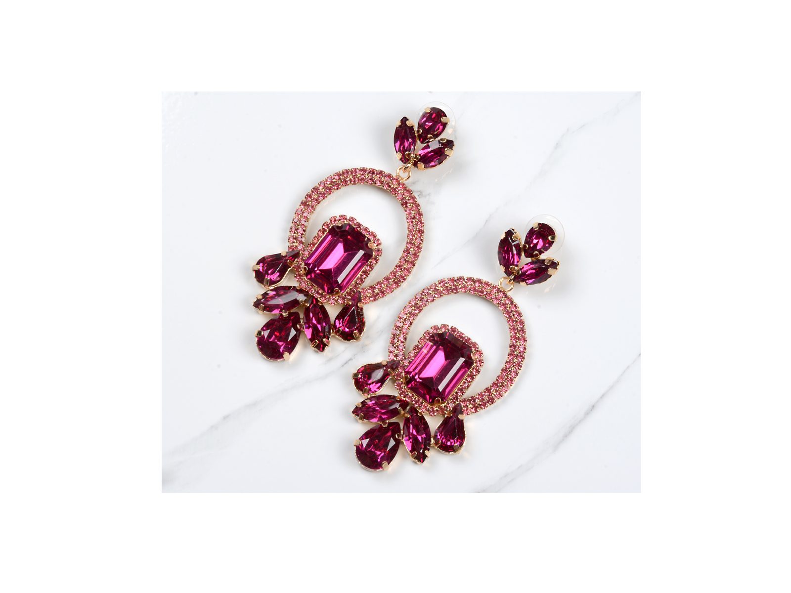 Κρεμαστά σκουλαρίκια με τετραγωνισμένα πετράδια ροζ.