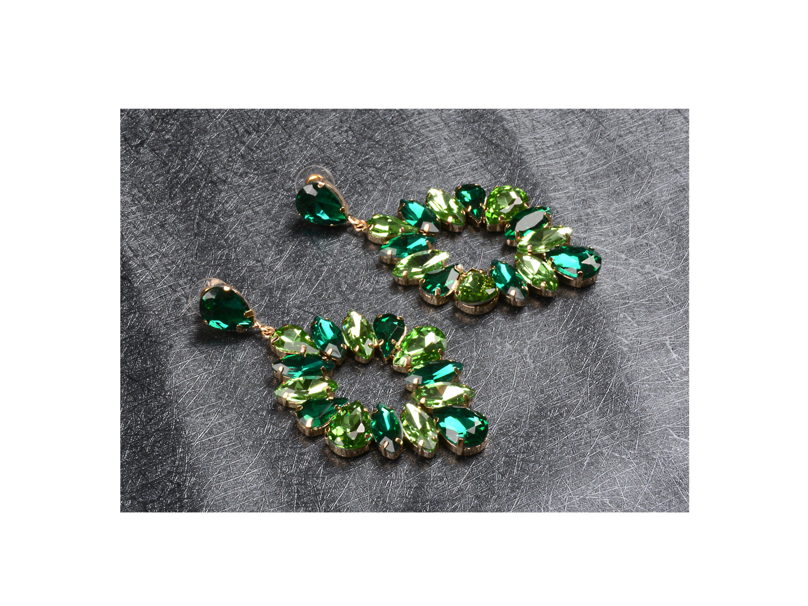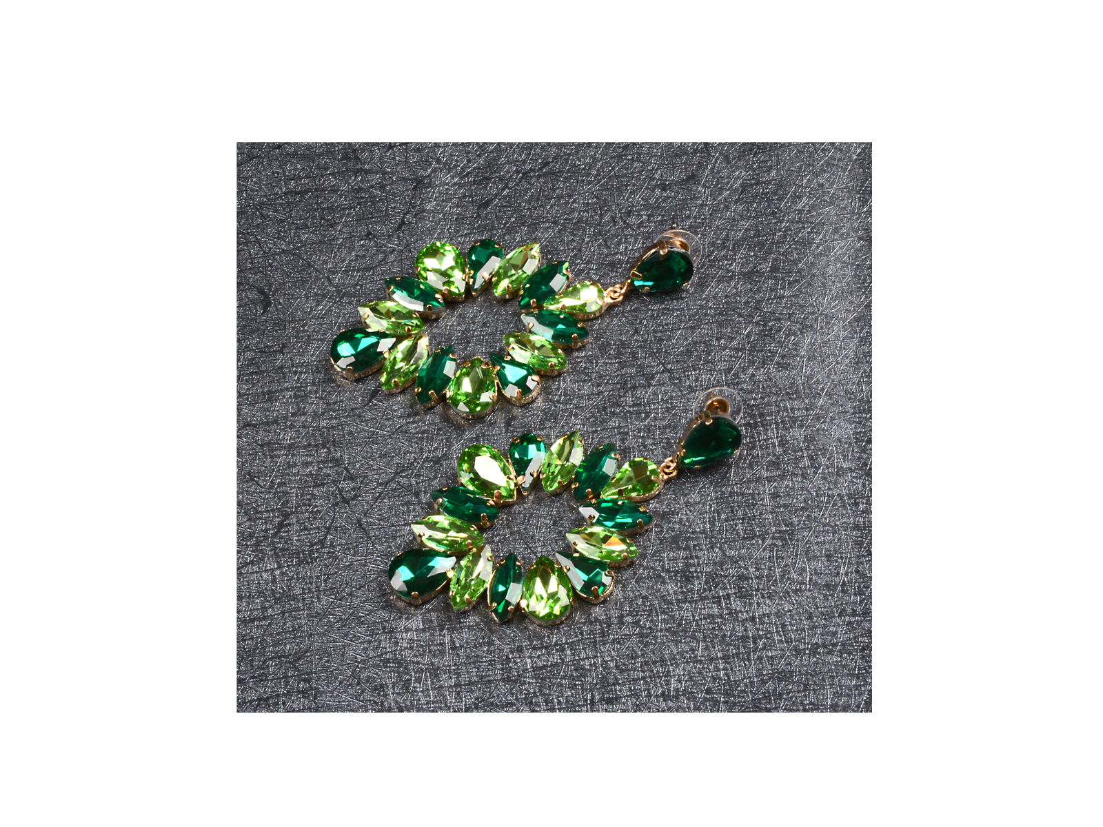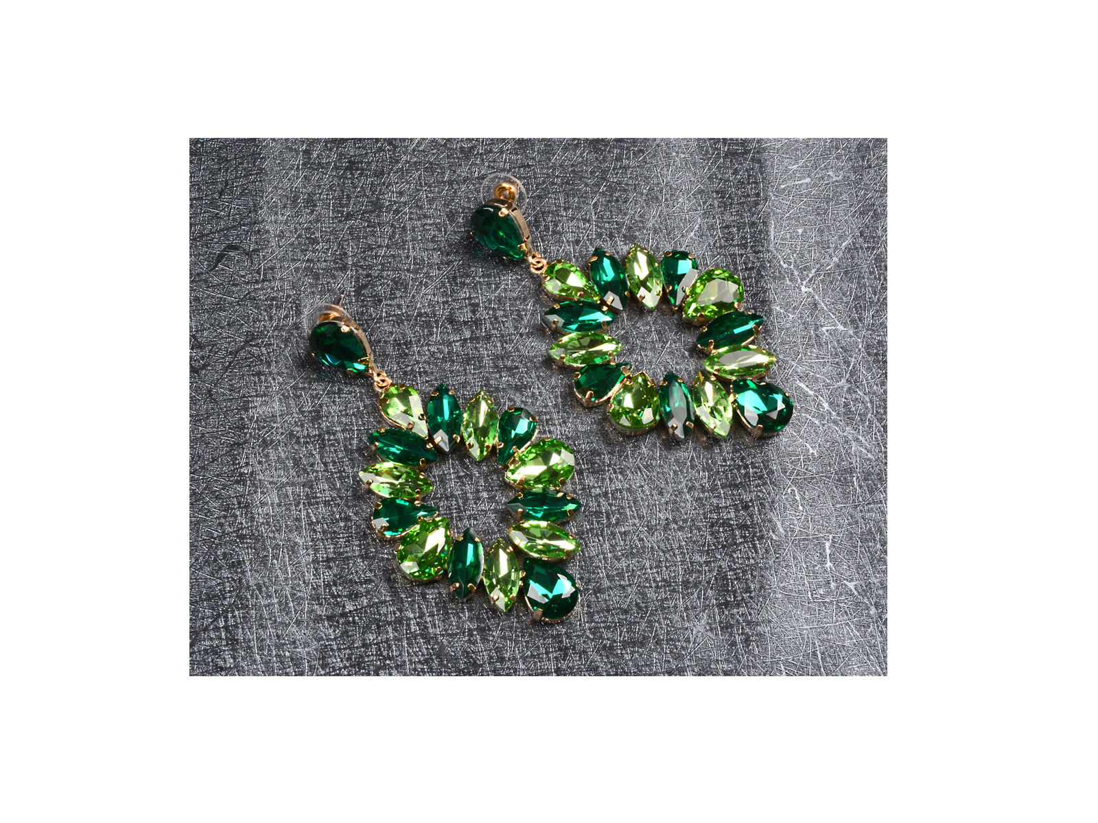 Κρεμαστά σκουλαρίκια ρόμβος με πράσινα πετράδια.
