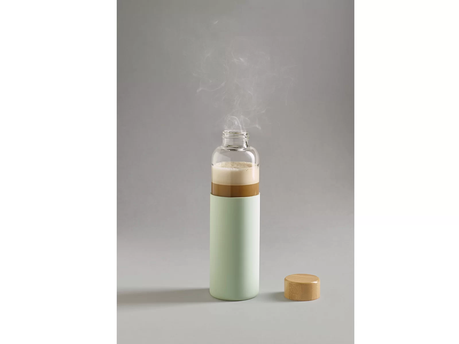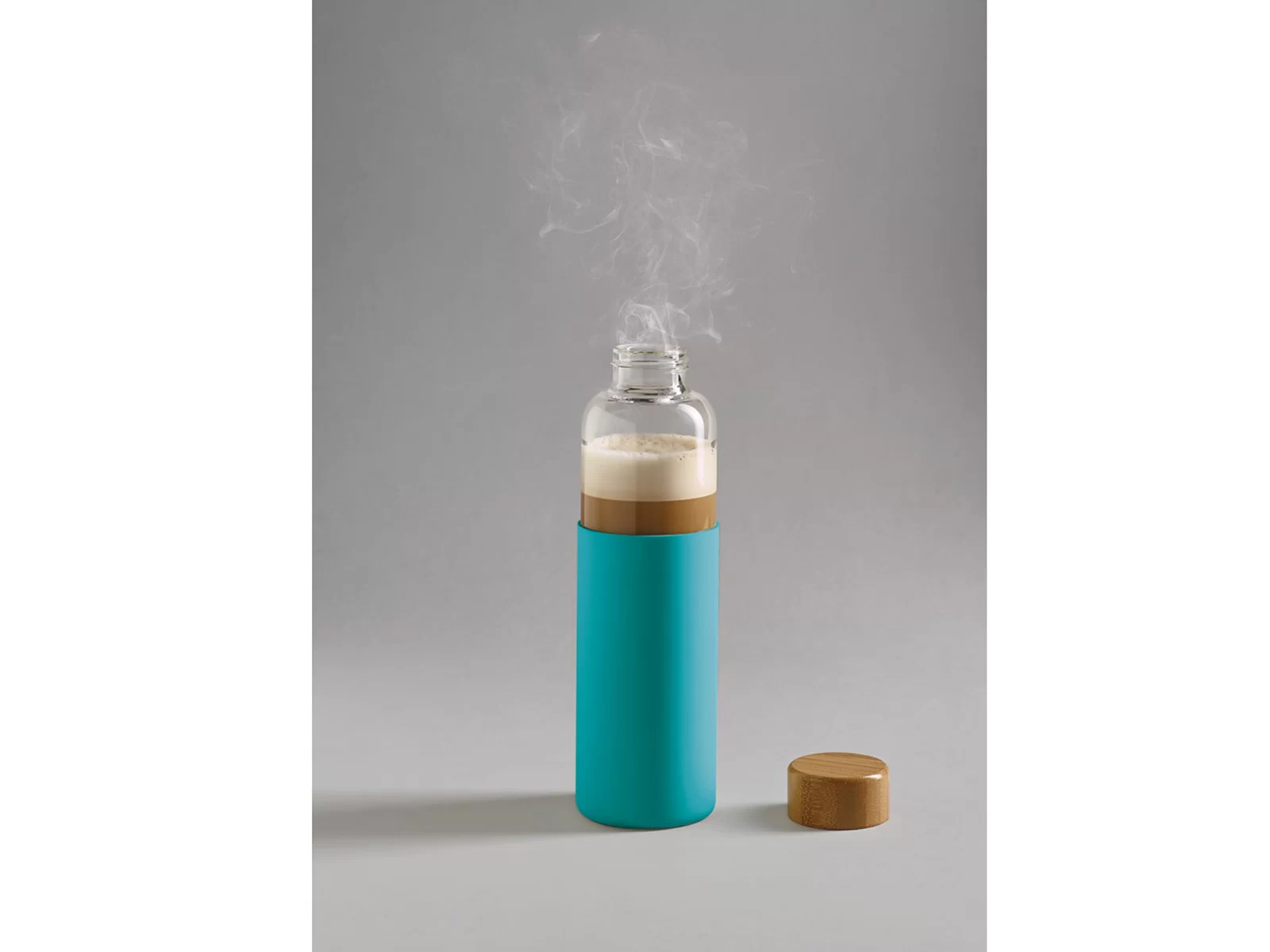 Μπουκάλι από βοριοπυριτικό γυαλί με καπάκι από μπαμπού και θήκη από σιλικόνη. Αυτό το μπουκάλι έχει χωρητικότητα έως 600 ml και διατίθεται σε κουτί από χαρτόνι.