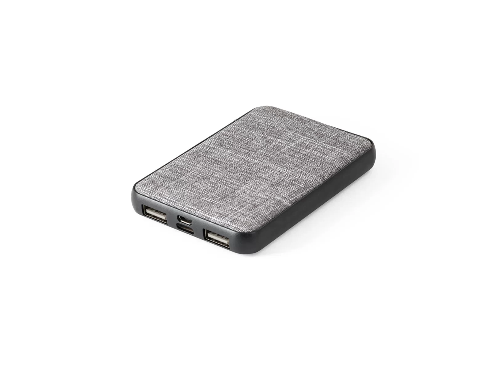 Φορητή μπαταρία 100% rPET, με μπαταρία λιθίου, χωρητικότητα 5.000 mAh και είσοδο/έξοδο 5V/2A. Περιλαμβάνει μία θύρα microUSB, μία θύρα USB-C και δύο θύρες USB. Περιλαμβάνει καλώδιο μήκους 1m. Παρέχεται σε κουτί δώρου από χαρτί κραφτ.