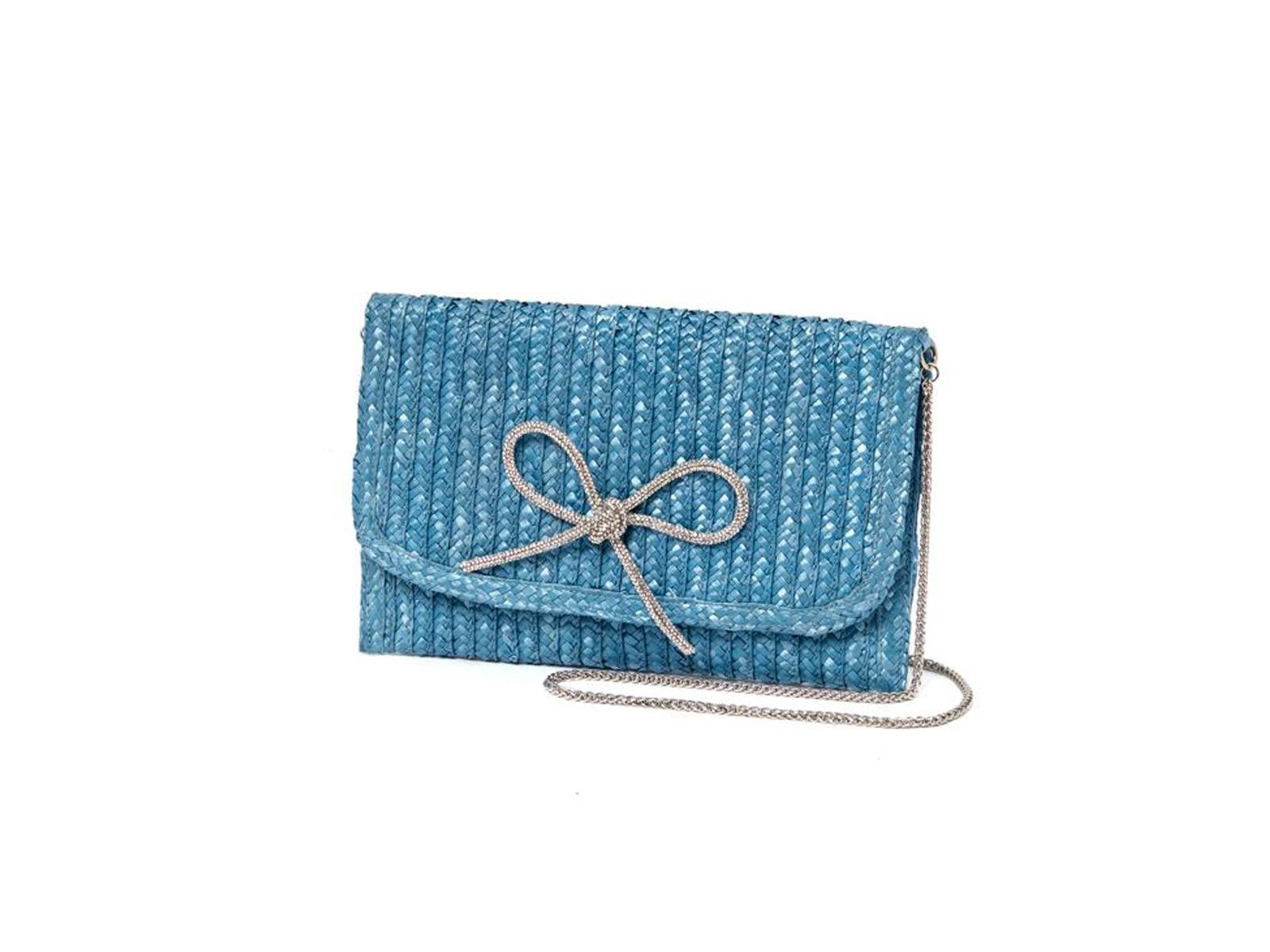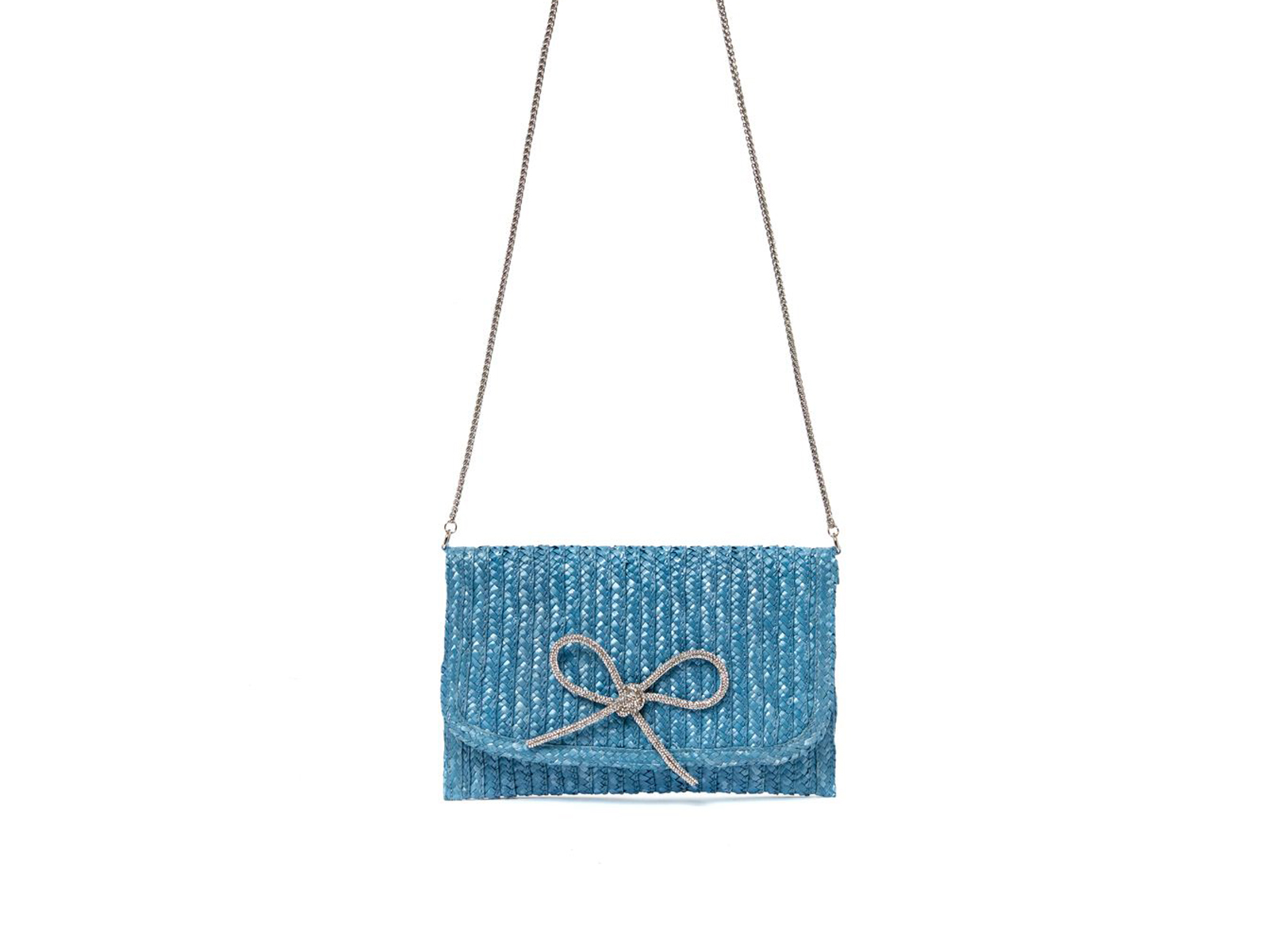 Ψάθινη crossbody τσάντα NALI με φιόγκο και αλυσίδα.