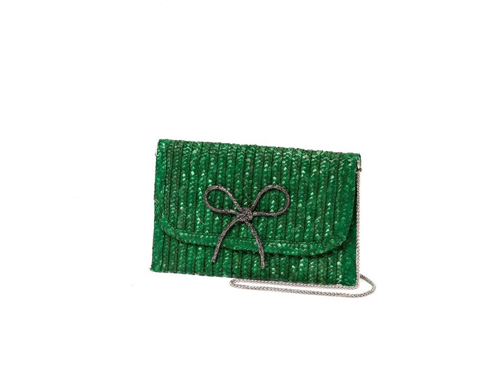 Ψάθινη crossbody τσάντα NALI με φιόγκο και αλυσίδα.