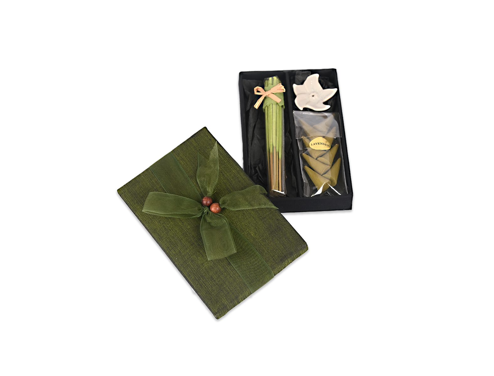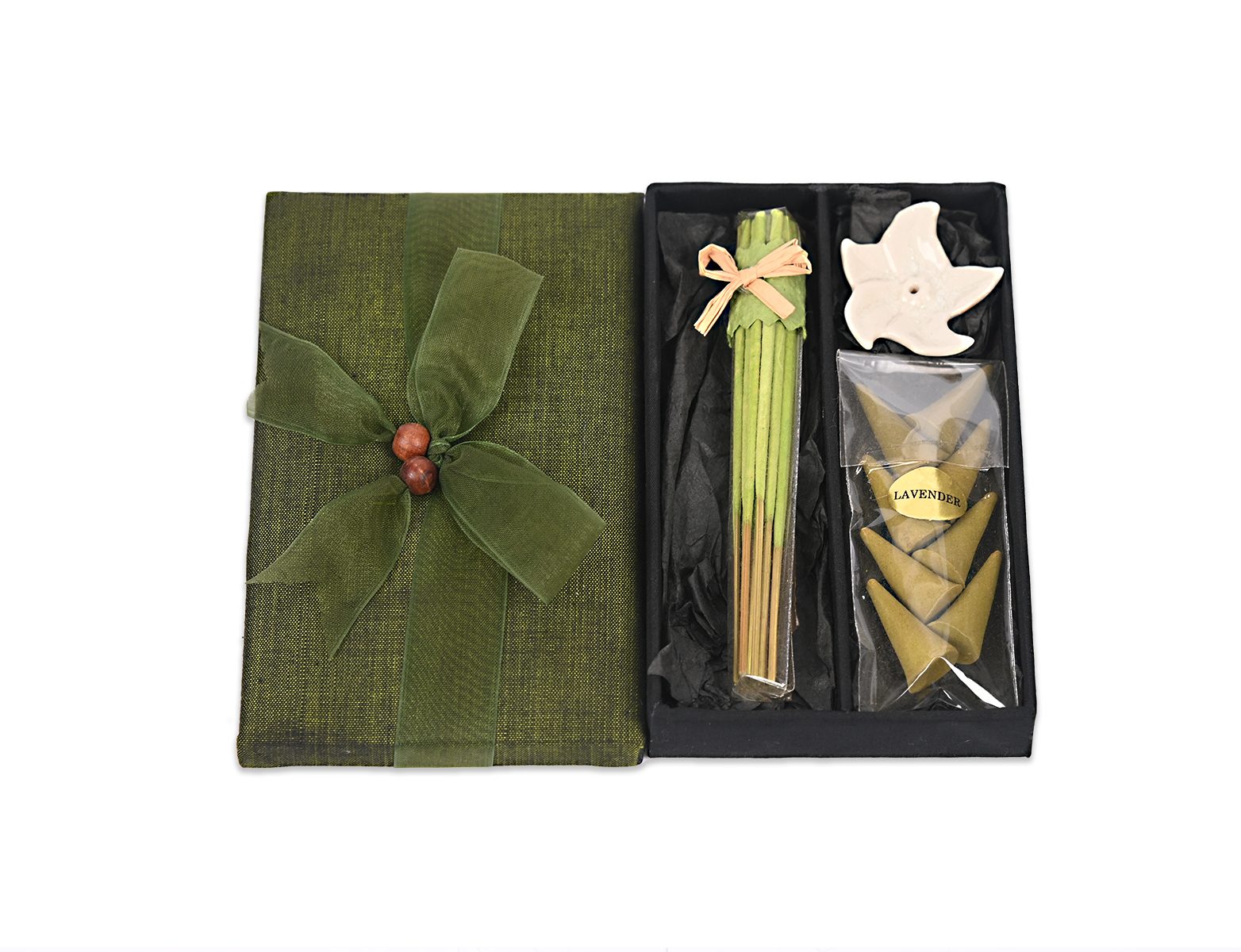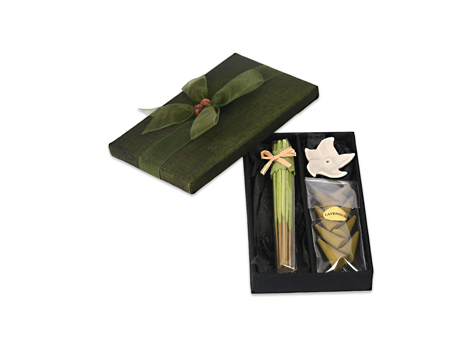 Σετ με αρωματικά sticks που καίγονται με βάση σε κουτί.