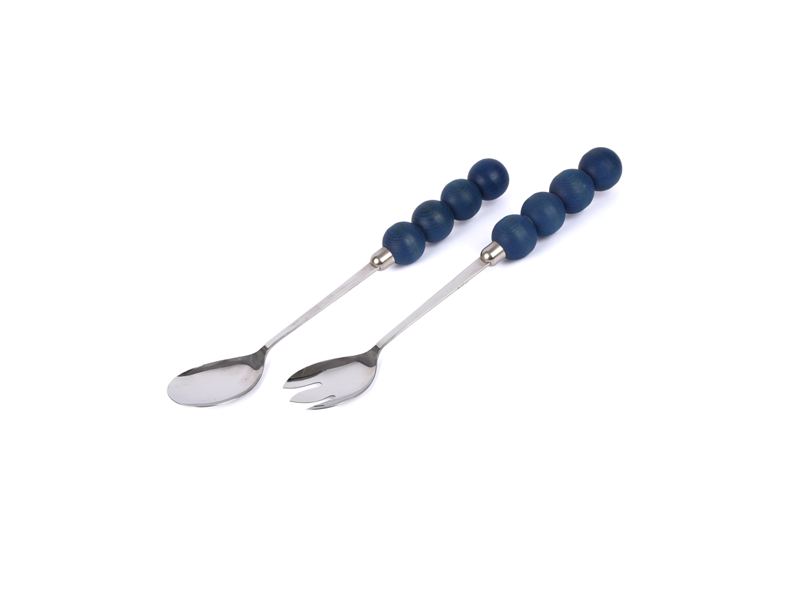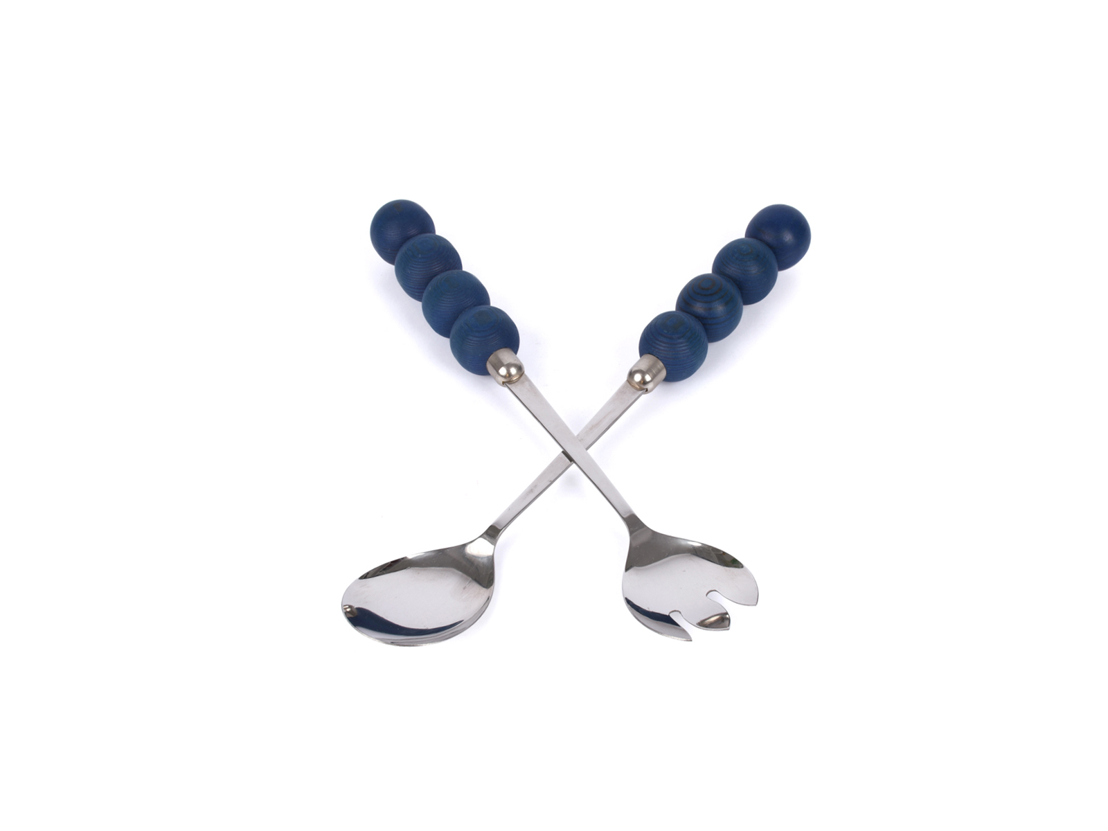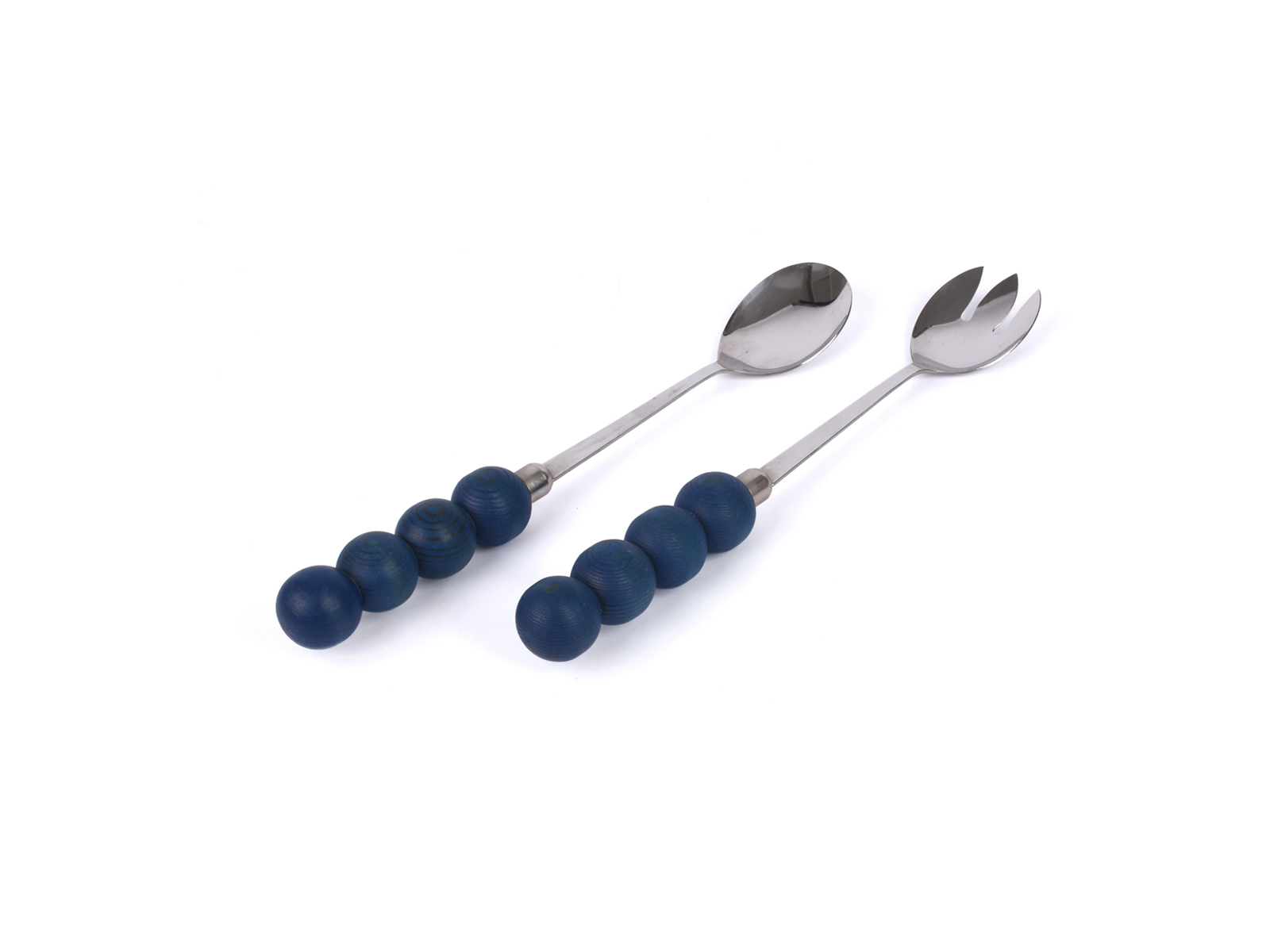 Σετ σερβιρίσματος σαλάτας, ανοξείδωτο και με ξύλινη βάση.