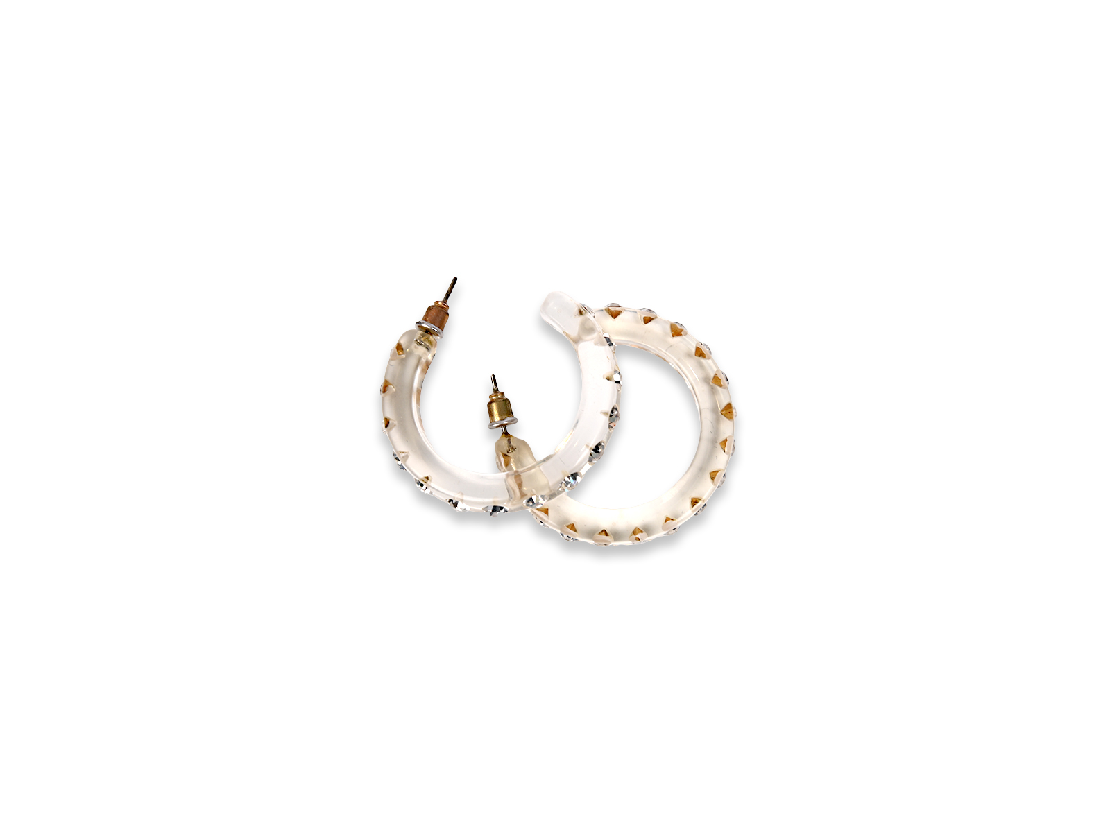 Καρφωτά σκουλαρίκια κρίκοι από μελαμίνη με στρας.