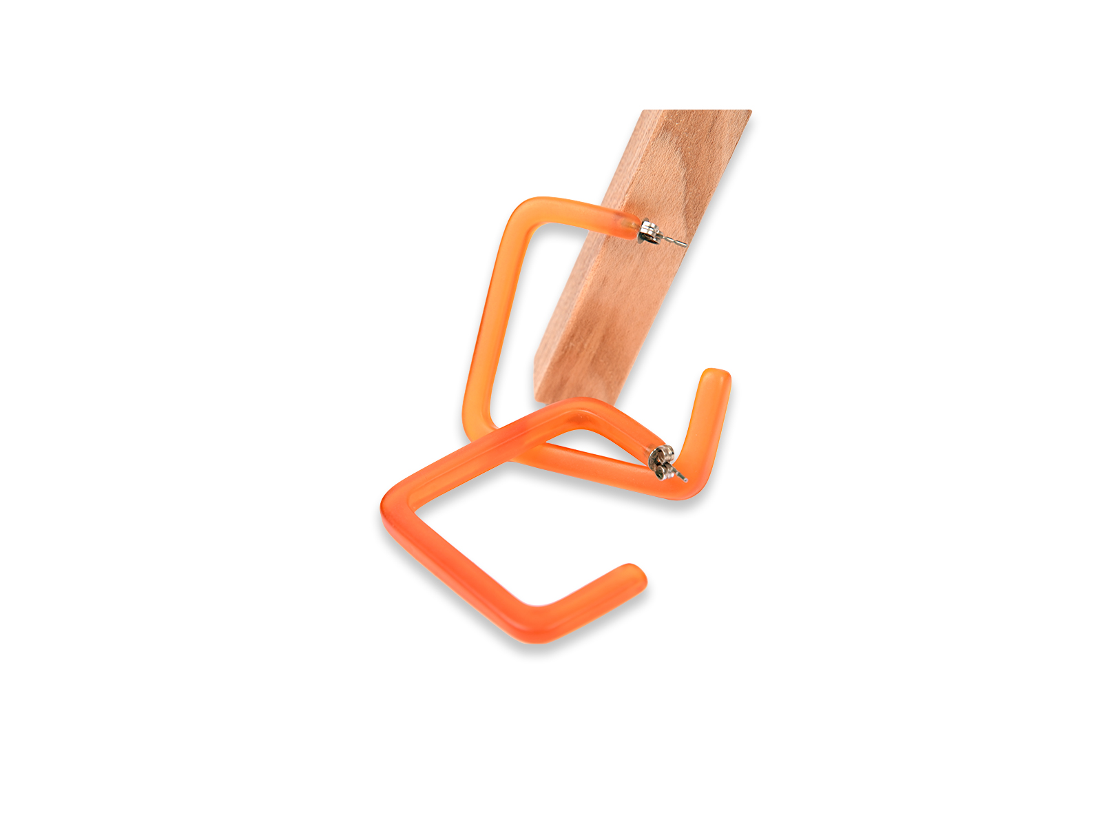 Καρφωτά σκουλαρίκια κρίκοι από χρωματιστή μελαμίνη, σε τετράγωνο σχήμα.
