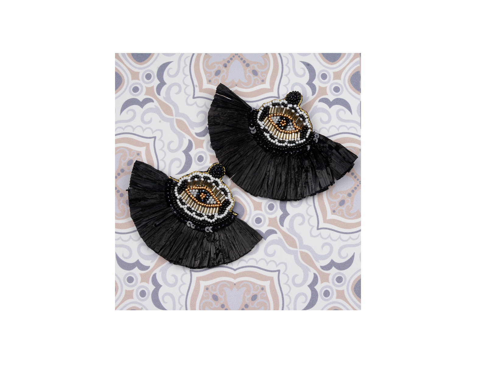 Σκουλαρίκια βεντάλια με μάτι από χάντρες.