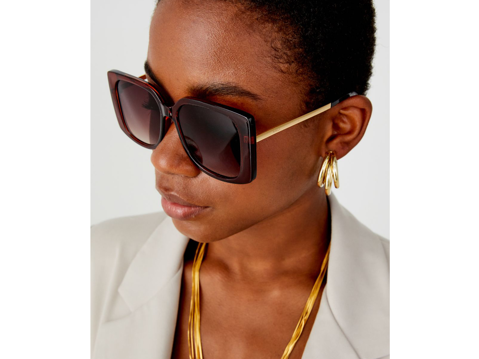 Γυαλιά ηλίου Nalì τετράγωνα με χρυσό σκελετό χρώματος μπορντώ με καφέ φακό.