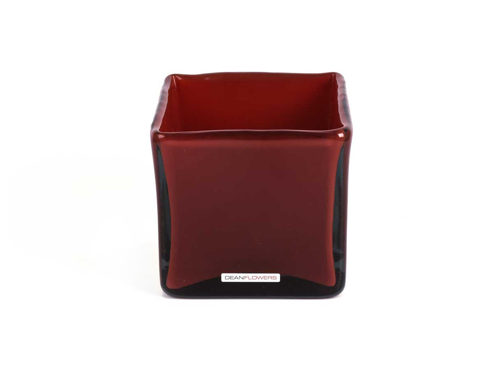 Τετράγωνο κηροπήγιο και βάζο από γυαλί, χρώματος κόκκινο από τον σχεδιαστή Henry Dean.