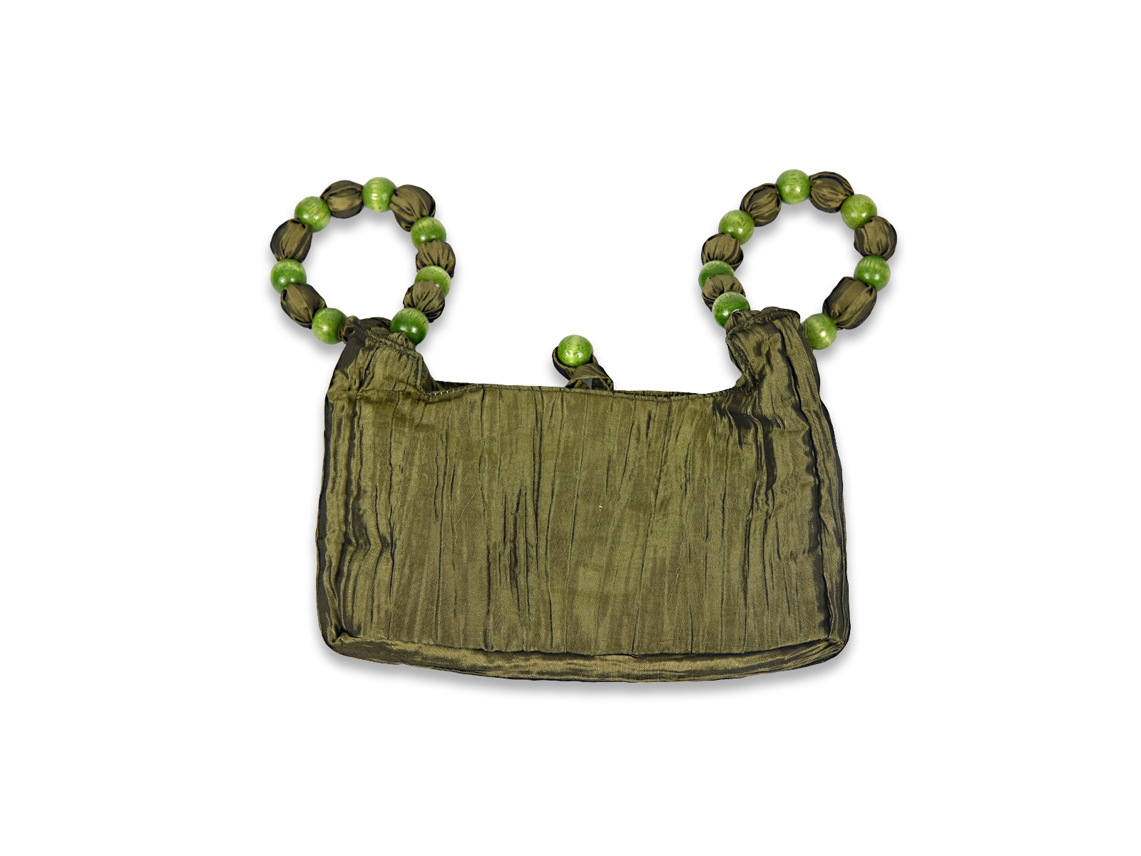 Υφασμάτινο μεταξωτό τσαντάκι χειρός με χερούλια και χάντρες, MISTERO VENEZIA.