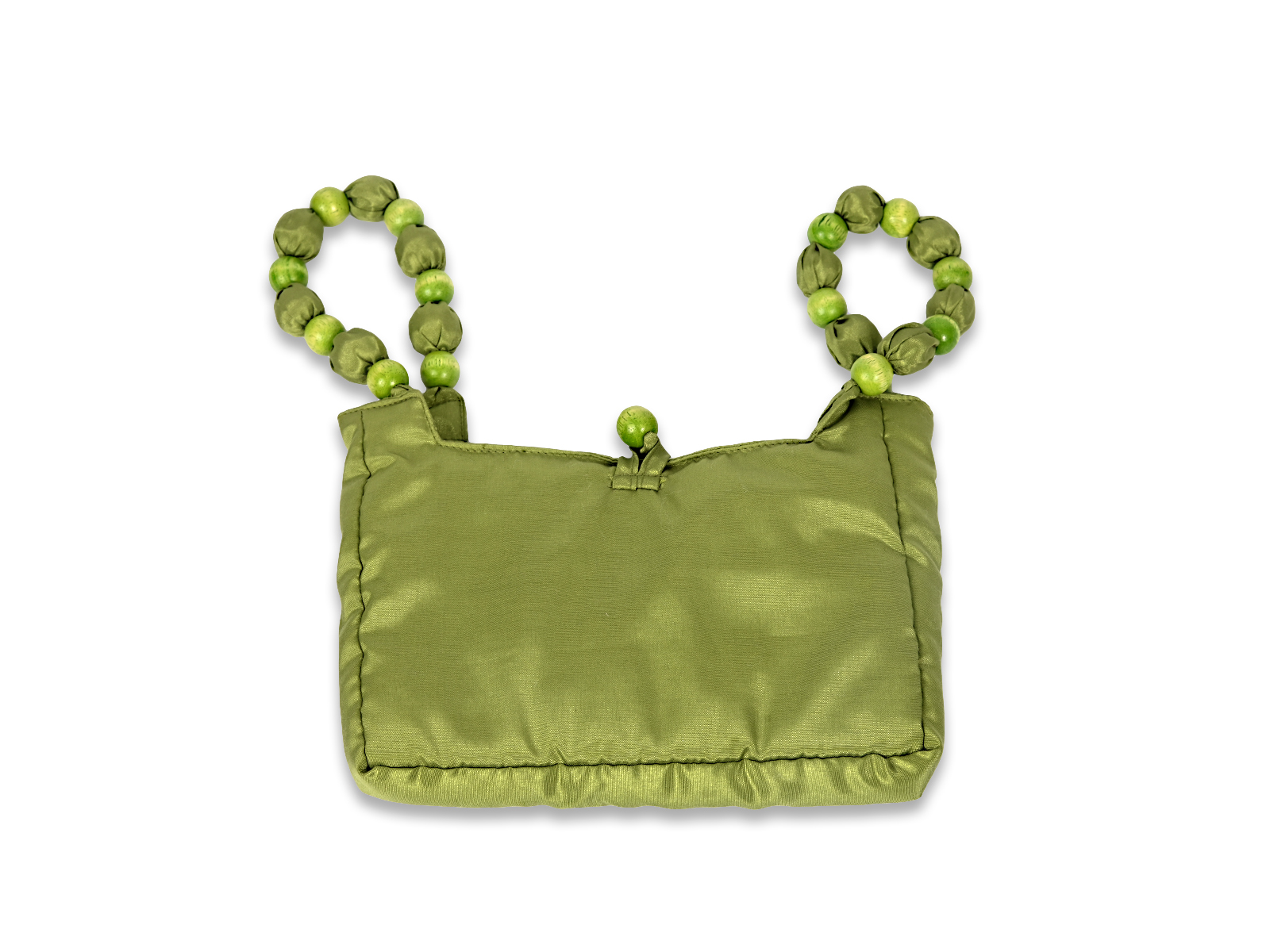 Υφασμάτινο τσαντάκι χειρός με χερούλια με χάντρες λαχανί, MISTERO VENEZIA.