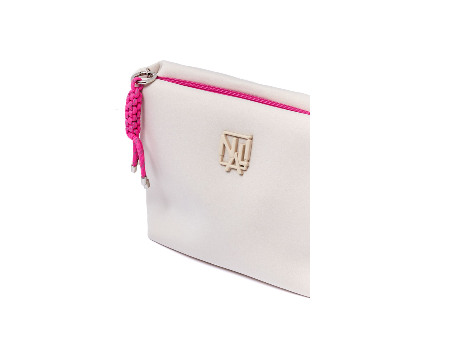Μπεζ τσαντάκι χειρός Nalì με φούξια φερμουάρ.