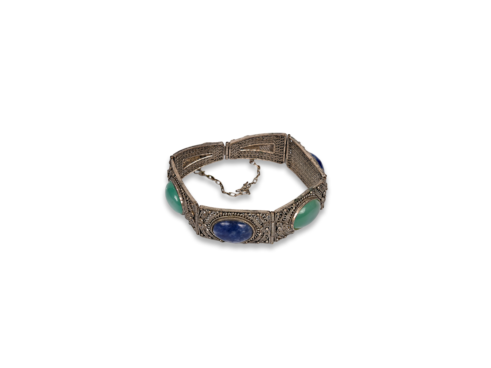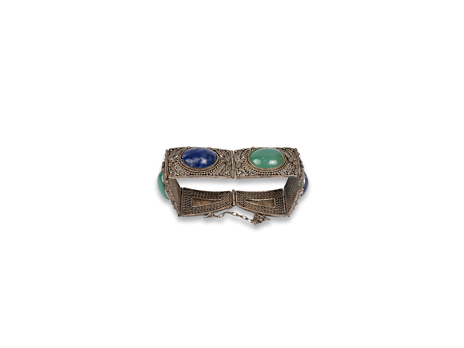 Βραχιόλι από ασήμι με διακόσμηση σε “γιαννιώτικο” στυλ και χρωματιστές πέτρες.