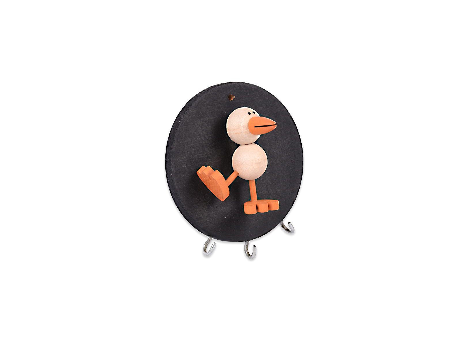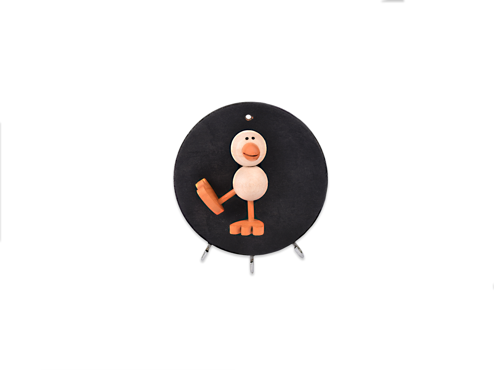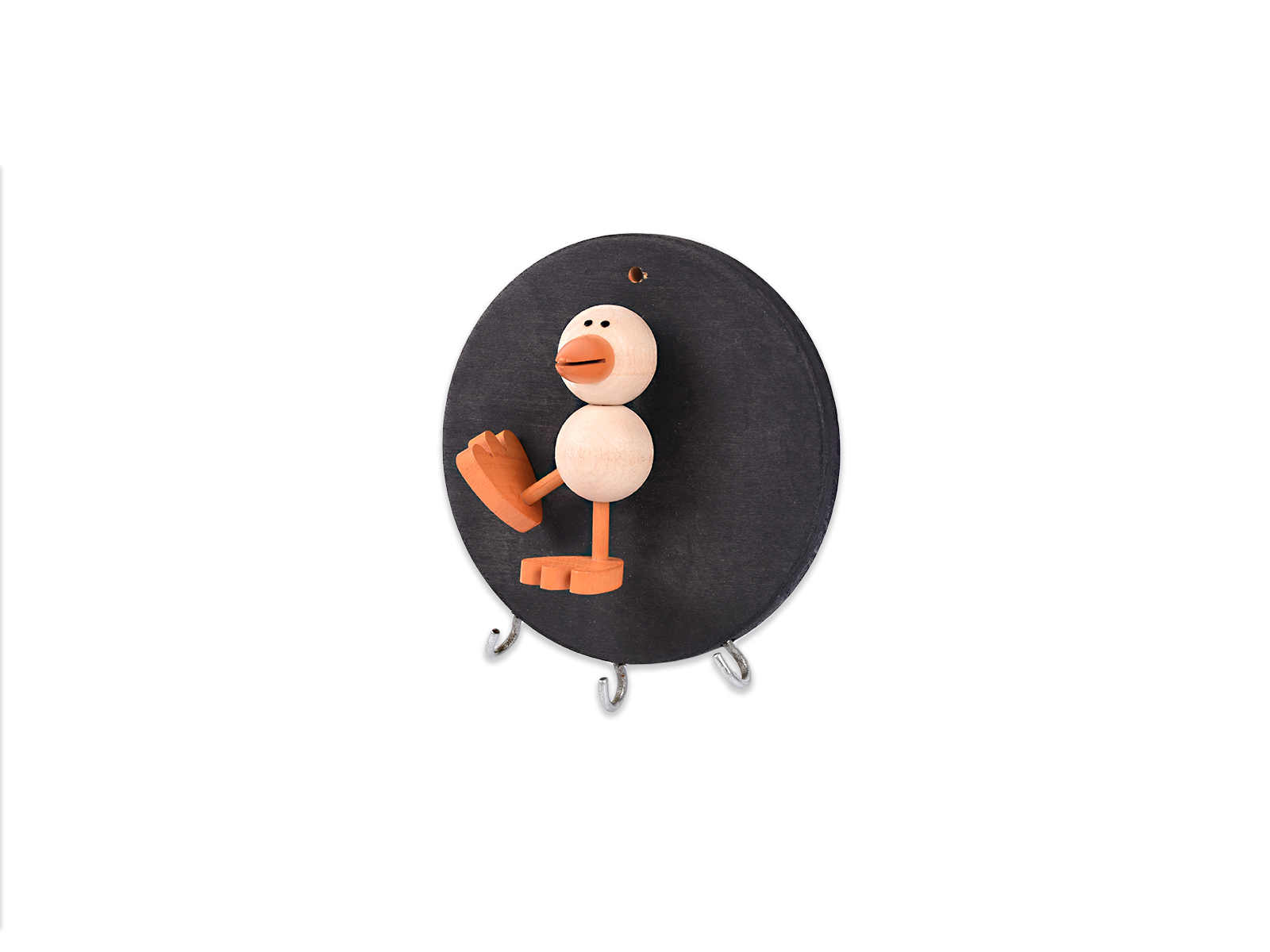 Ξύλινη κρεμάστρα, στρογγυλή, με τρεις θέσεις για κρέμασμα και διακοσμητικό ξύλινο παπί.