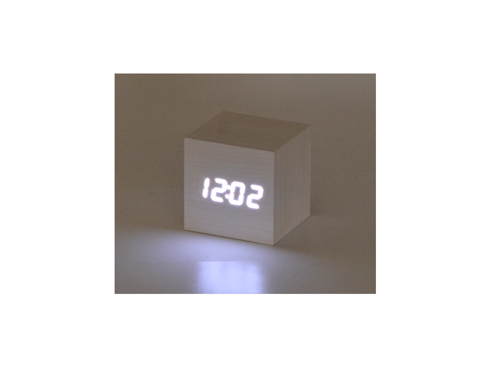 Ξύλινο ψηφιακό ρολόϊ που δείχνει την ώρα, την ημερομηνία και τη θερμοκρασία με φωτάκι LED.